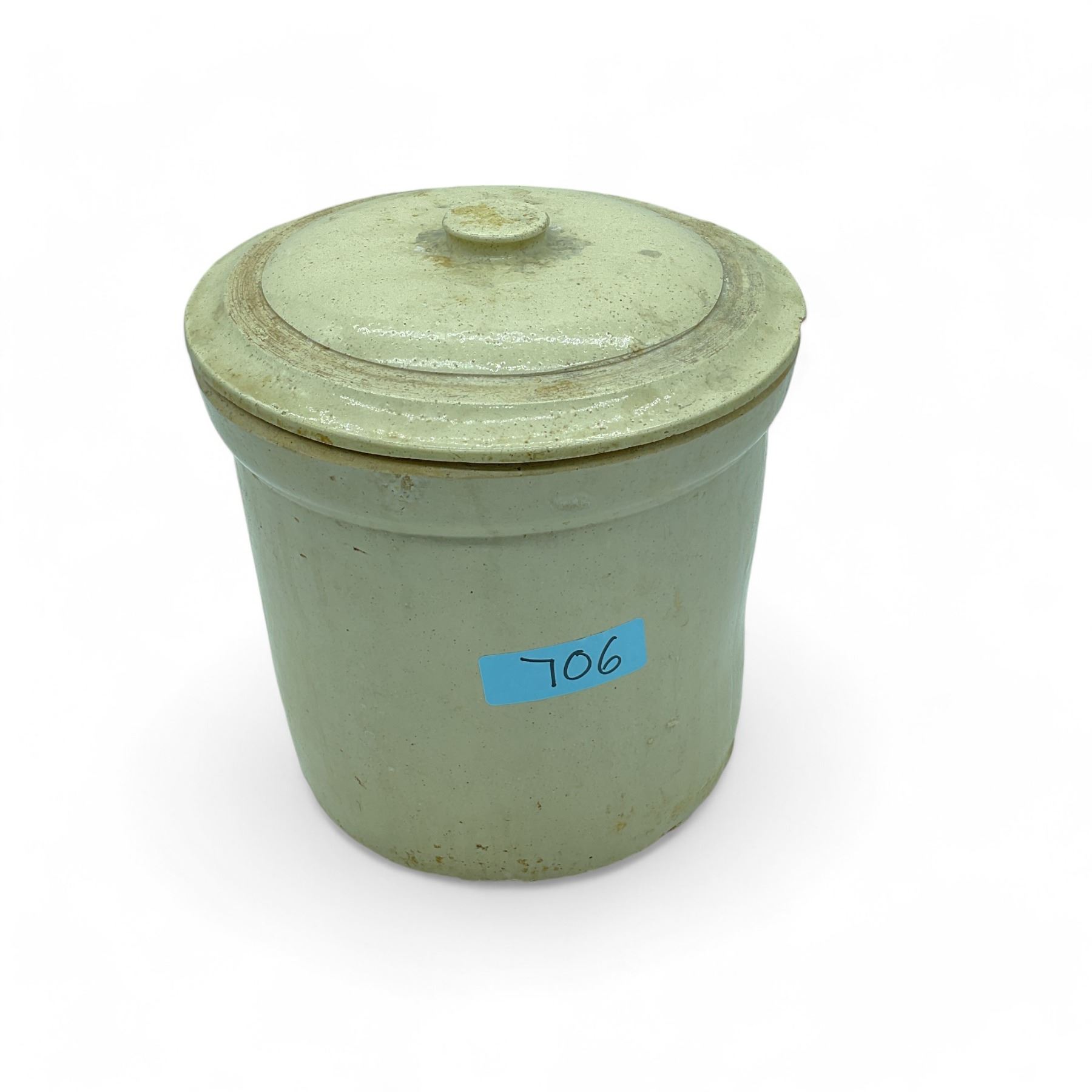 Lot 706 Medalta Stoneware LTD Stoneware Crock with Lid, 8-3/4" Tall x 8-3/4" Diameter, Marked