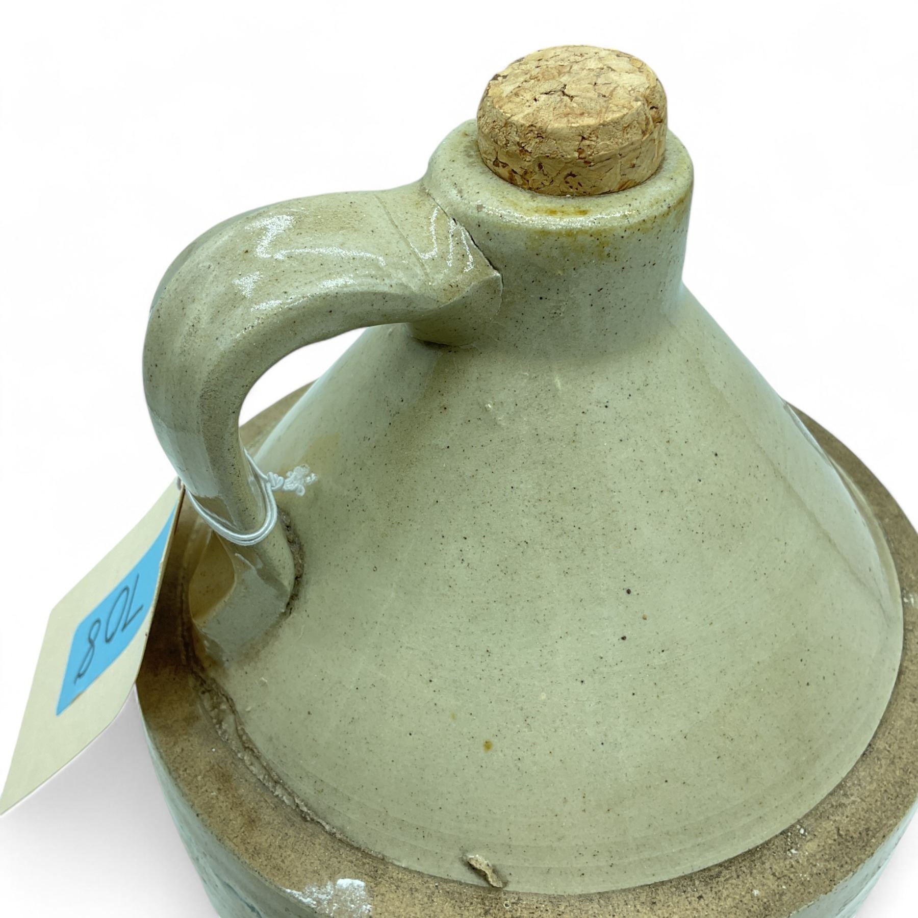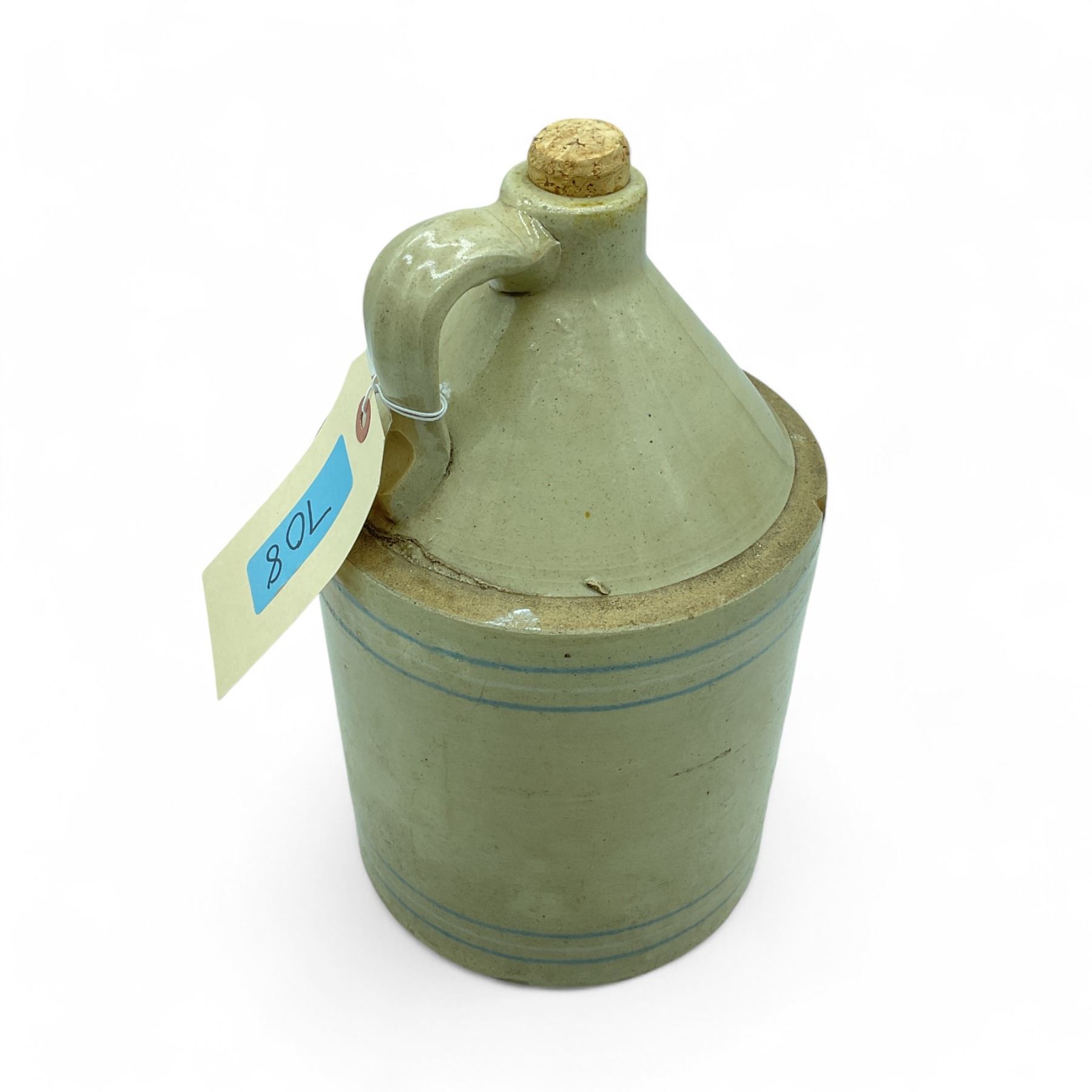 Lot 708 Stoneware Jug with Cork Stopper, 11-3/4" Tall x 7-1/4" Diameter, No Marking