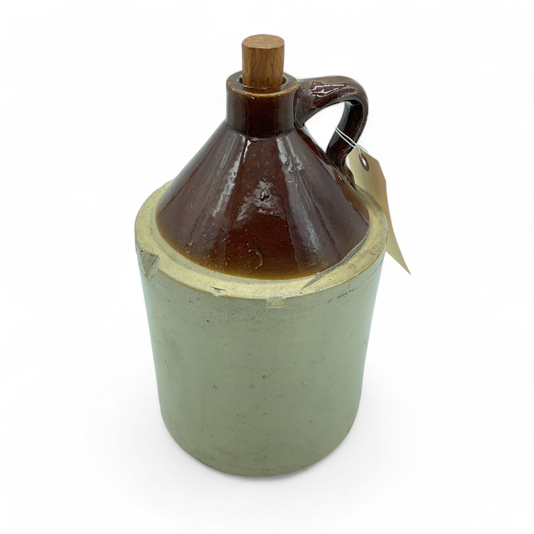 Stoneware Jug with Wood Plug Stopper, 11-1/2" Tall x 7" Diameter (at widest part), No Markings