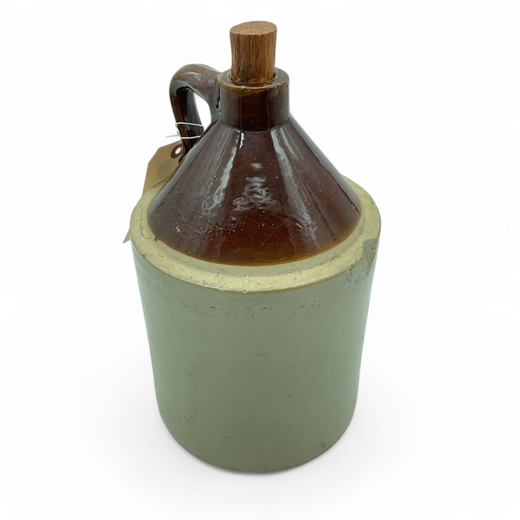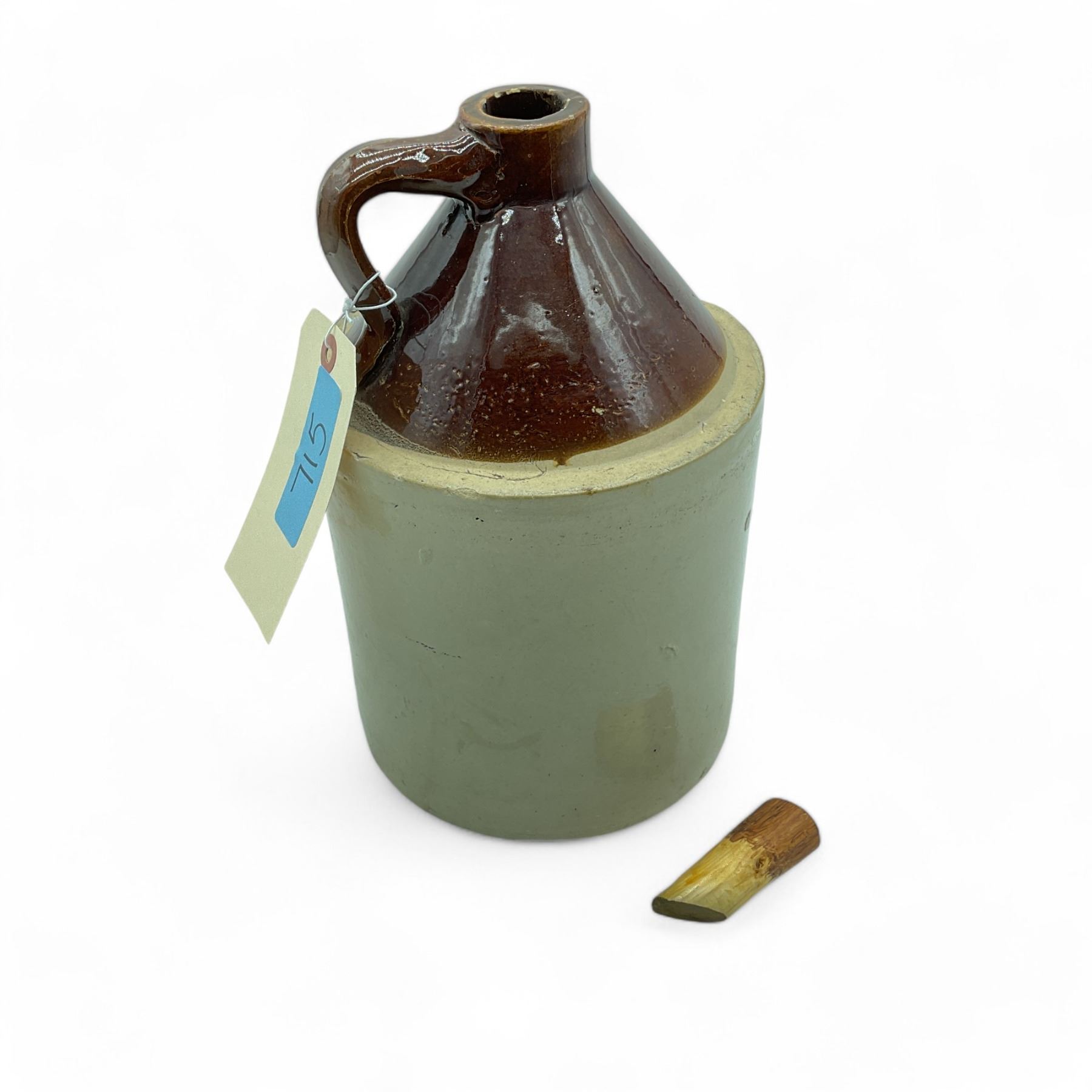 Lot 715 Stoneware Jug with Wood Plug Stopper, 11-1/2" Tall x 7" Diameter, No Markings