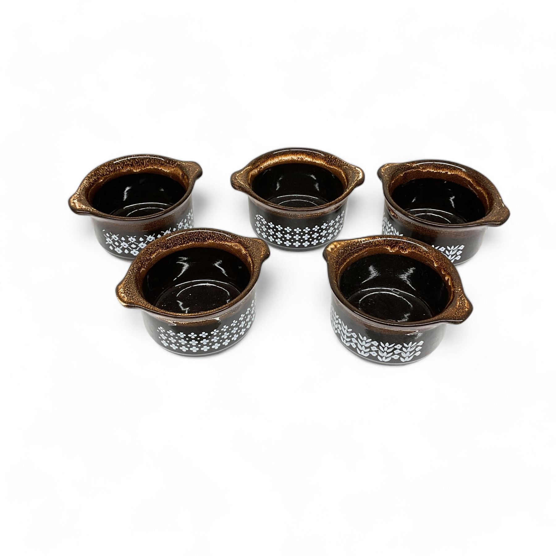 Set of 5 Ceramic Soup Bowls, 2-1/2" Tall x 4" Diameter, Marked "England" on Bottom