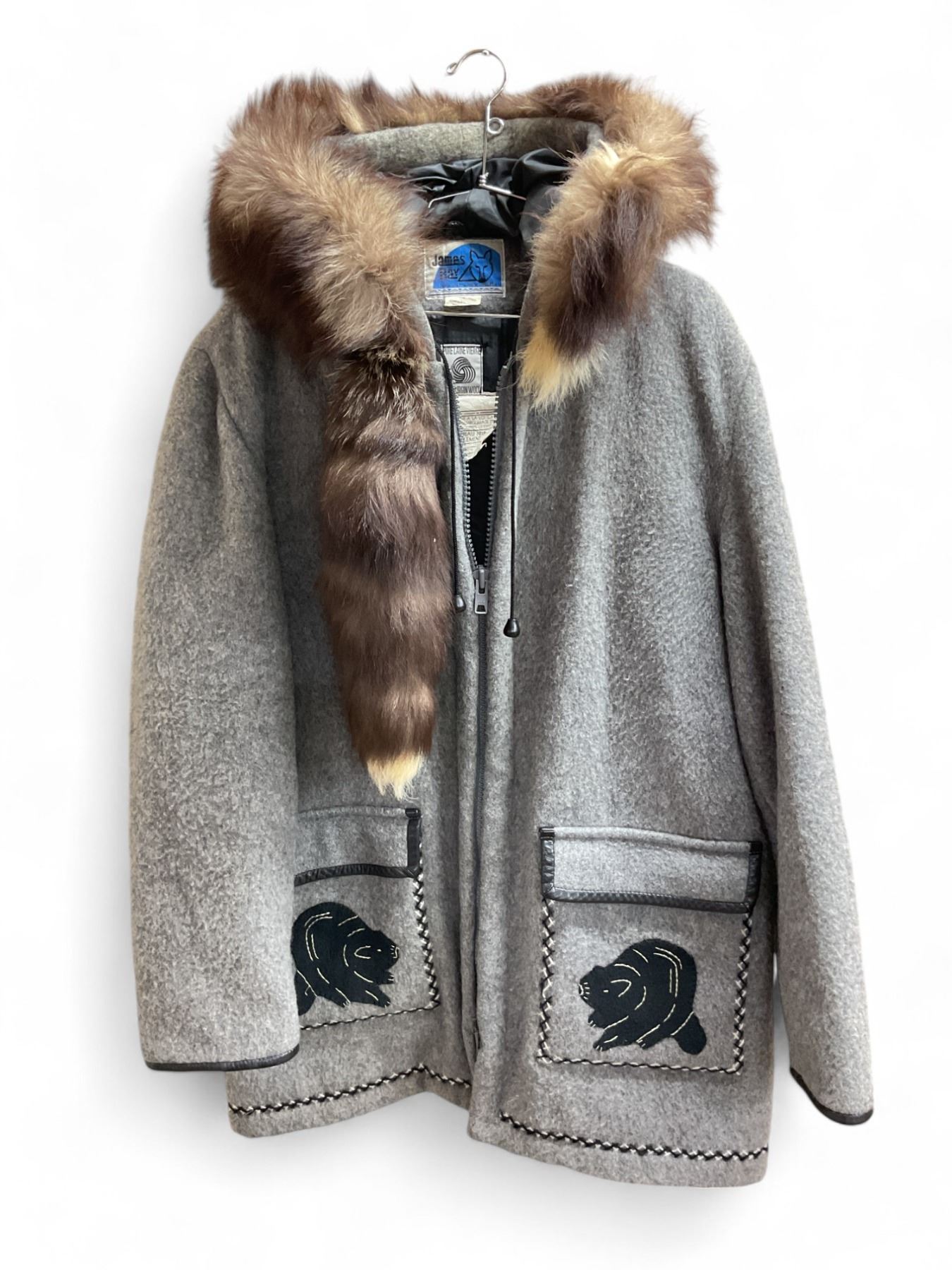 Lot 745 Vintage James Bay 100% Wool and Fur Hooded Parka, Size: Men's X-Large