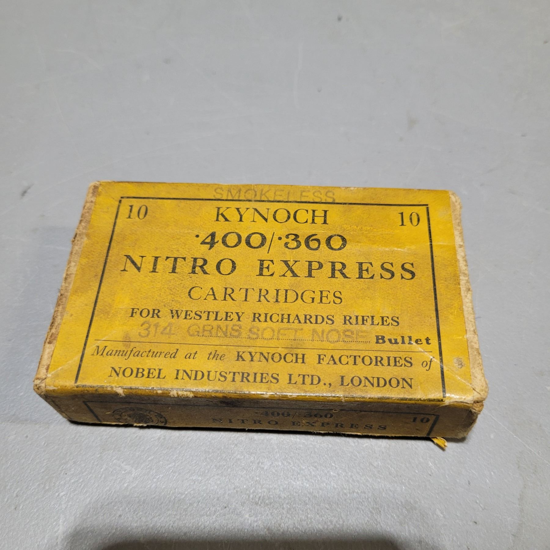Kynoch .400/.360 Nitro Express Cartridge Box with 5 pieces of Brass