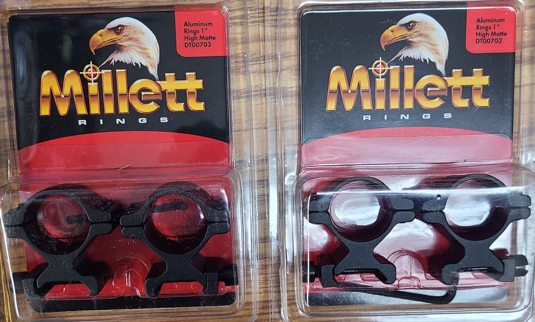 Lot 461 Millett 1 inch Scope Rings - 2 Sets High to Suit Picatinny Rail - NEW