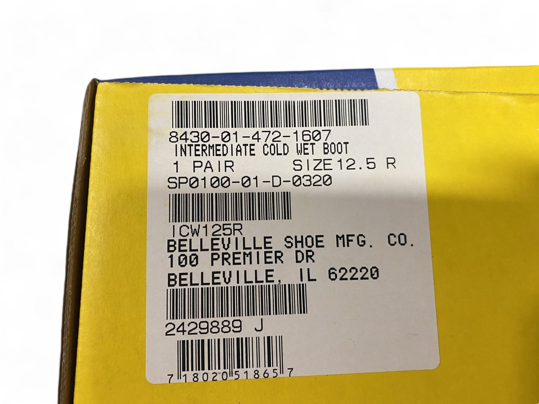 Belleville Intermediate Cold/Wet Boots in black, size 12.5 R. These feature Gore-tex fabric, Vibram soles, and two sets of removeable liners. Boots are new in box