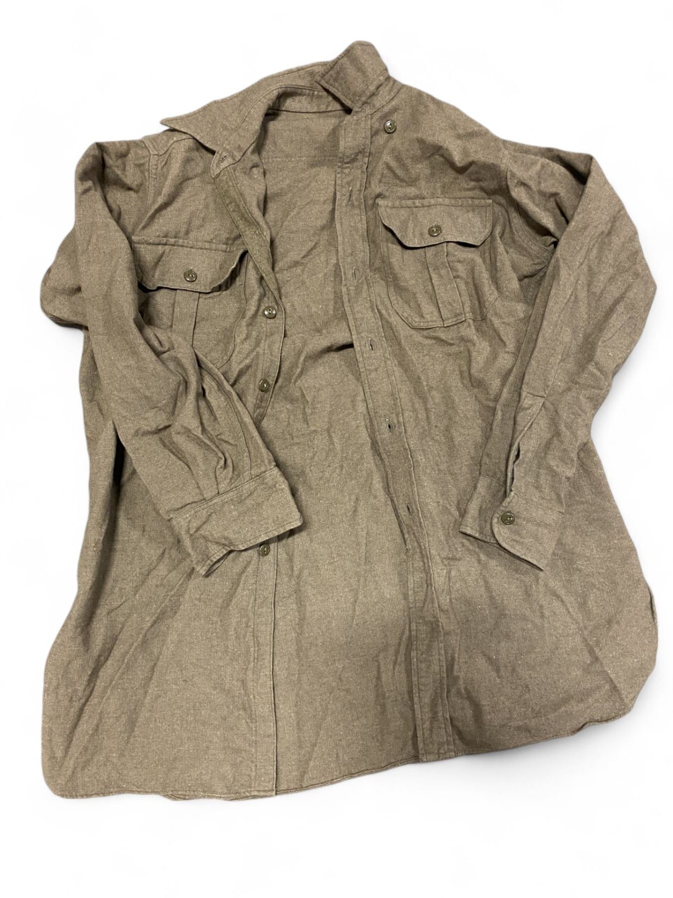 These shirts are used in good condition. Flanel/ Cotton Blend Olive Green May have markings inside of neck collar