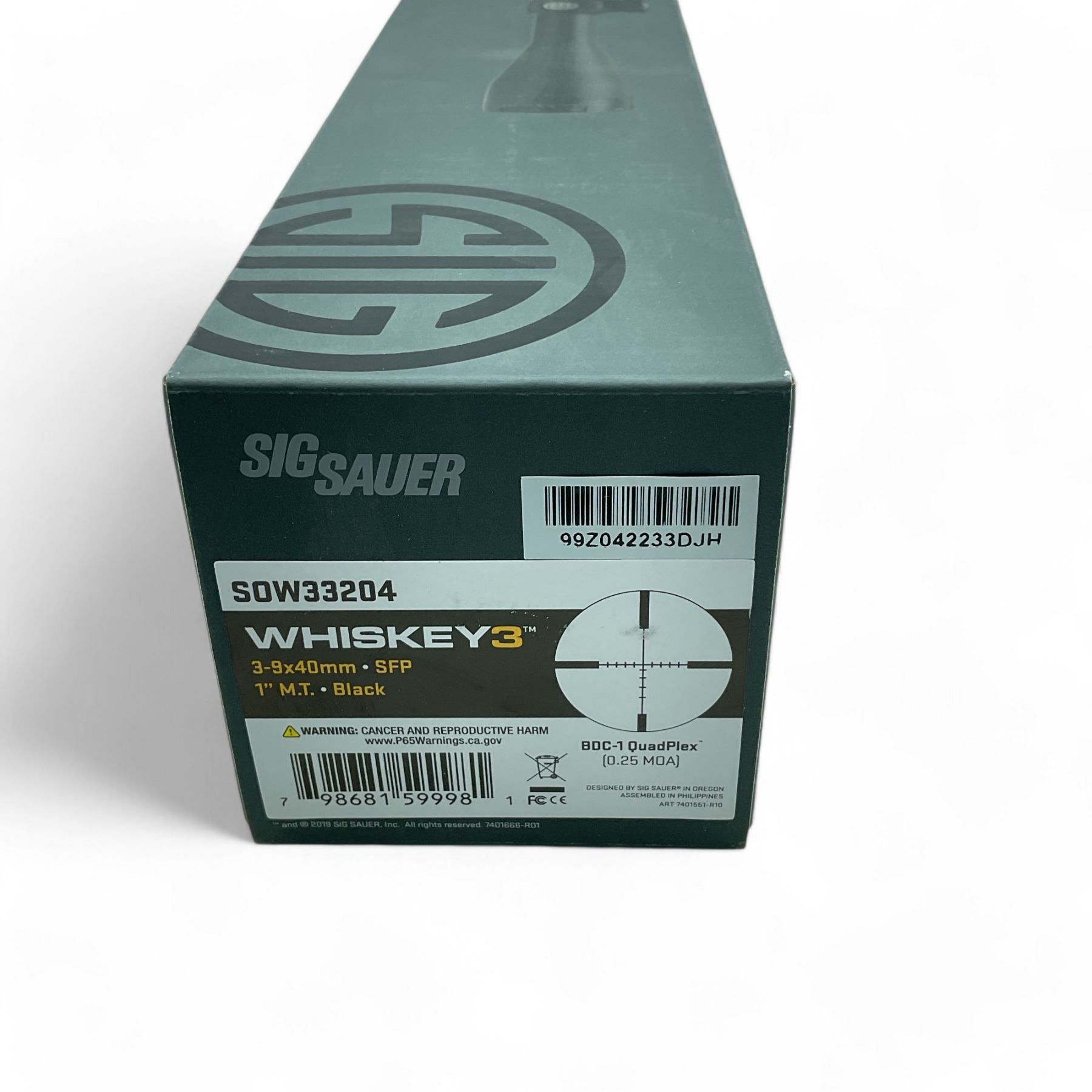 Sig Sauer Whiskey 3 3-9 x 40mm SPF 1" MT Black Scope, BDC-1 Quadplex Reticle, New