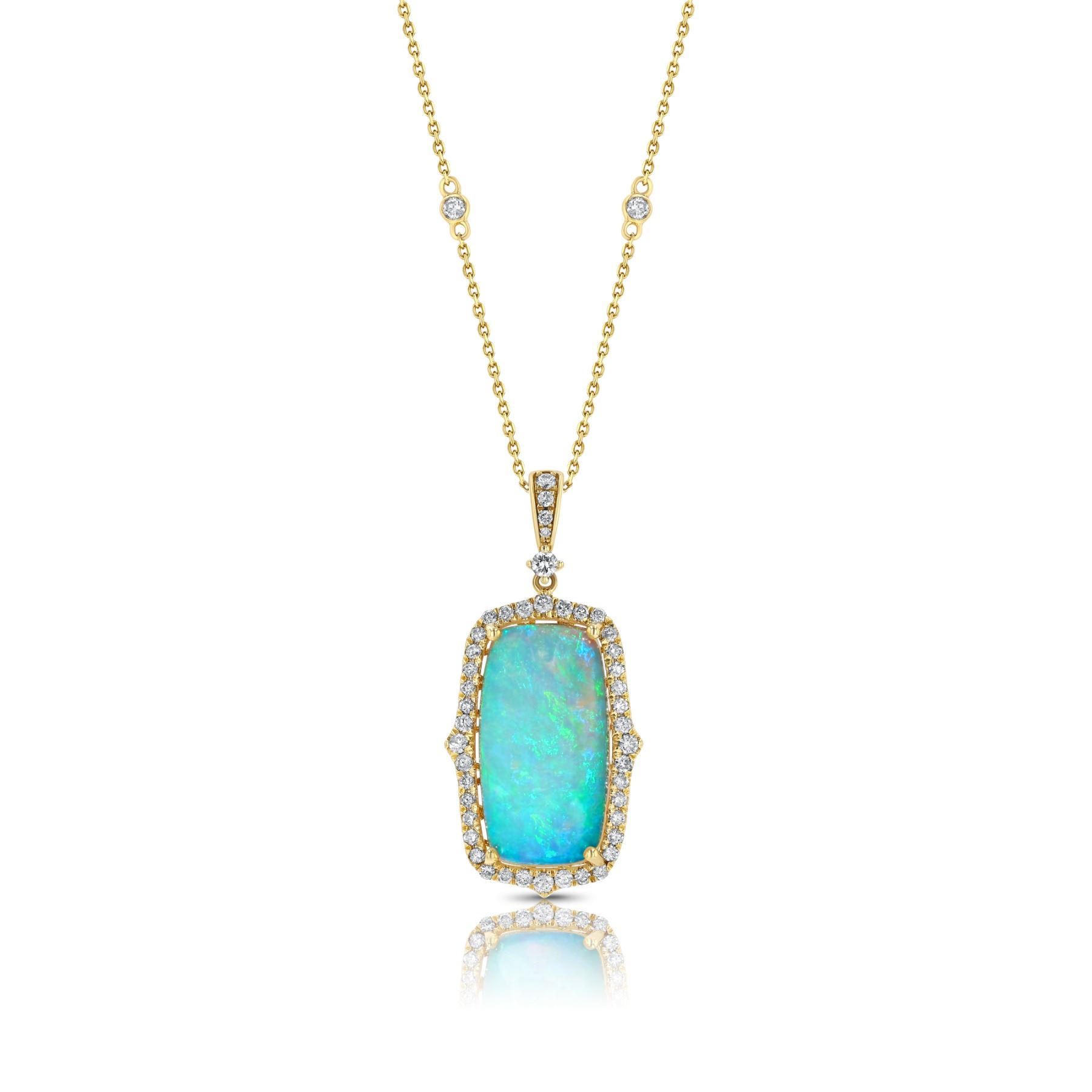 Lot 23 BARANOF JEWELERS: Natural Opal and Diamond Necklace Set in 14K Yellow Gold