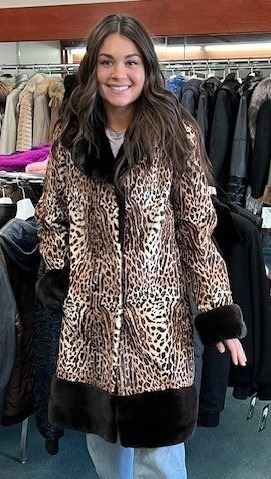 David Green Master Furrier has generously donated a work of art in this stunning animal print kidskin jacket. This gorgeous jacket is trimmed with a rich mahogany mink collar, cuffs and hem. Creatively constructed in a seamless skin-on-skin pattern, this lightweight, chic and sporty jacket is a great addition to any woman's wardrobe. Size medium, non-exchangeable. DALLAS SAFARI CLUB THANKS DAVID GREEN MASTER FURRIER FOR THIS 100% DONATION. David Green, 907-277-9595, 907-227-4194, 130 W. 4th Avenue, Anchorage, AK 99501, davidgreenak@aol.com, DavidGreenFurs.Com, BOOTH #3633.