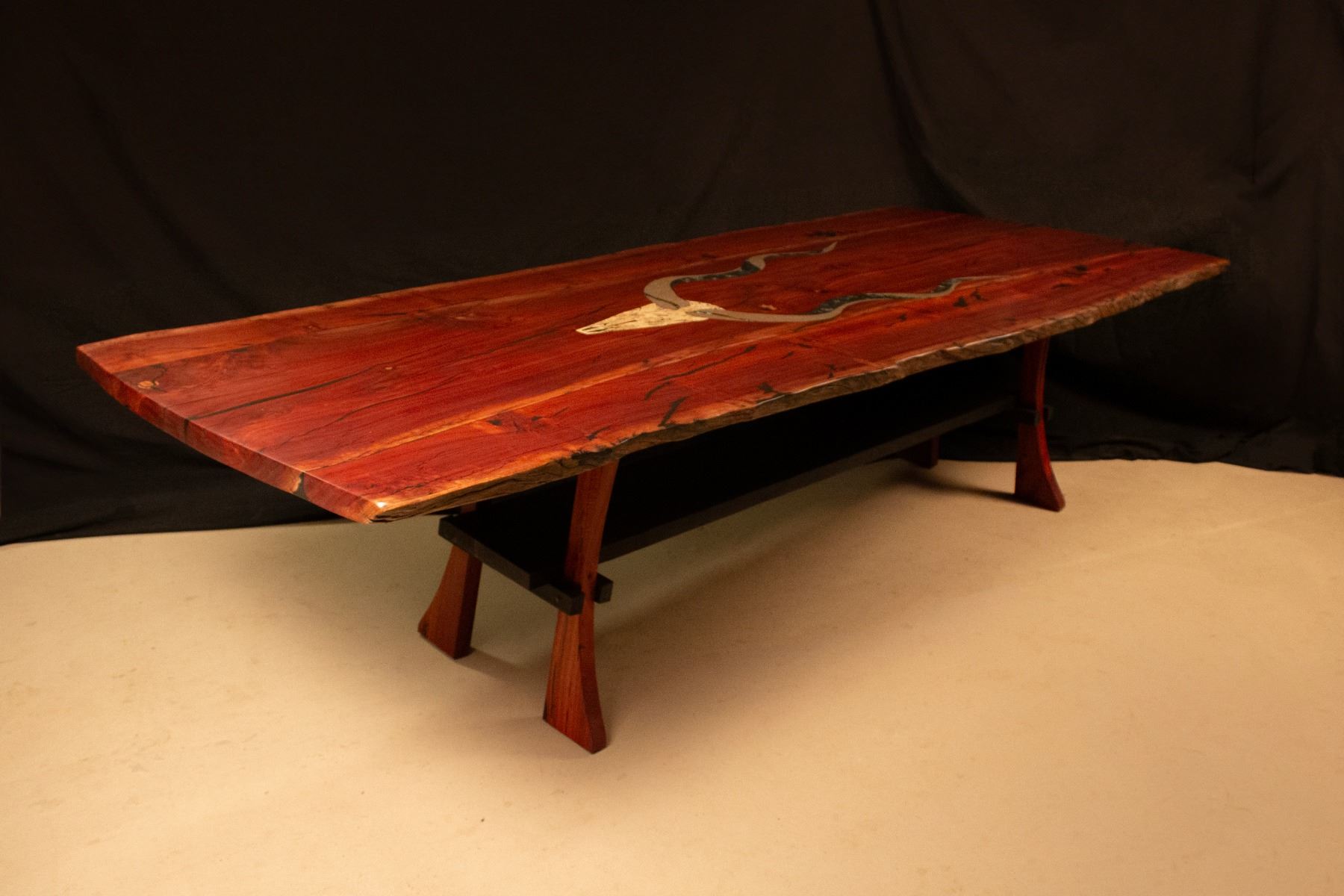 Lot 8 ANDY SANCHEZ: Eucalyptus Dining Table with Turquoise, Soapstone and Marble Inlays