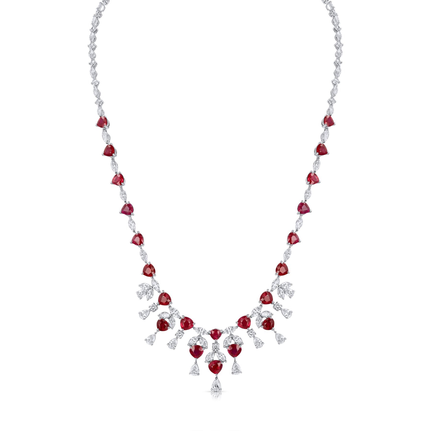 Lot 30 BARANOF JEWELERS: Natural Burmese Pigeon Blood Ruby and Diamond Necklace Set in 18K White Gold