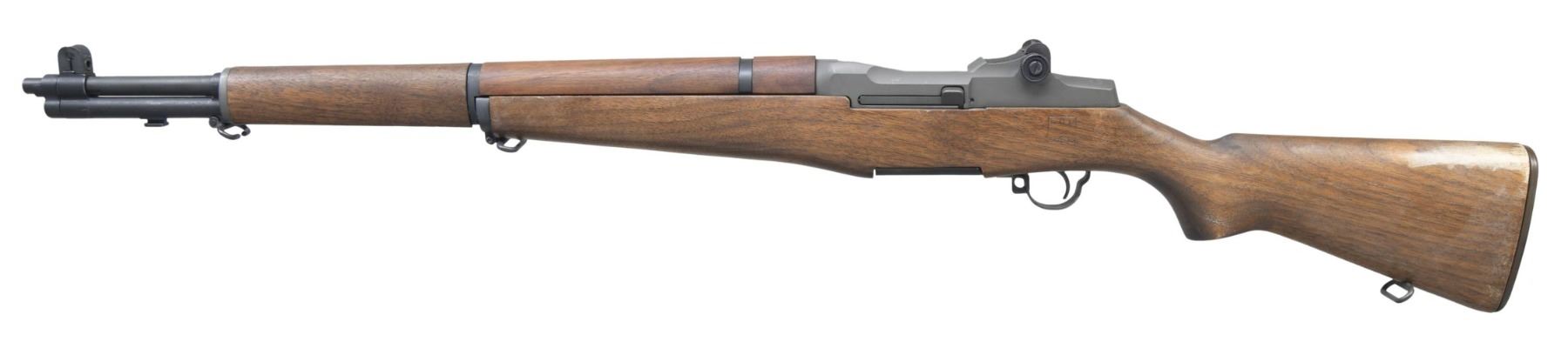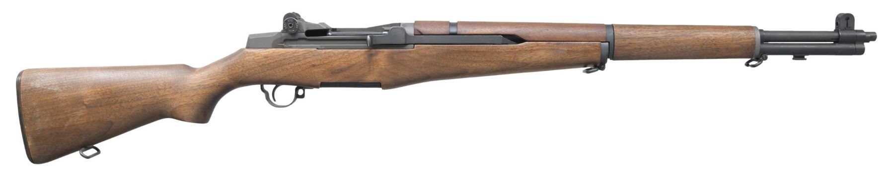 SEMI-AUTOMATIC MILITARY RIFLE. Cal. 30-06 S# 5759390. Bbl. 24", marked on the right side "HRA-1-52 P." Throat and muzzle gauge: 2.0. T105E1 aperture rear sight. Blade front sight with narrow protective ears. Replacement walnut stock set. Buttstock marked on left side with boxed "CMP" with an eagle and crossed cannons. CONDITION: stock set has light wear and tiny handling marks. Buttstock has notable areas of paint damage. Metal retains a large percentage of arsenal reworked parkerized finish with very light wear. Bolt is difficult to retract when fully locked. Very good, shiny bore. (24-5414/RW). CURIO. $800-1,200