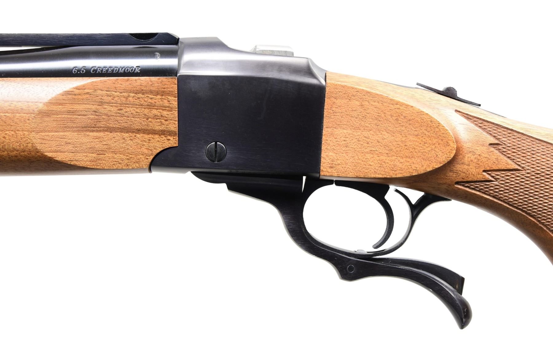 NUMBERED MODEL 11397 BOX. Cal. 6.5 Creedmoor. S# 134-46502 (2016). Bbl. 28", lightweight, with quarter rib for Ruger rings. Blued finish. Checkered walnut stock set. UNATTACHED ACCESSORIES: matching-numbered box contains packaging that includes Ruger rings. CONDITION: all aspects are near excellent, including bore. (24-3320/MD). MODERN. $800-1,200.