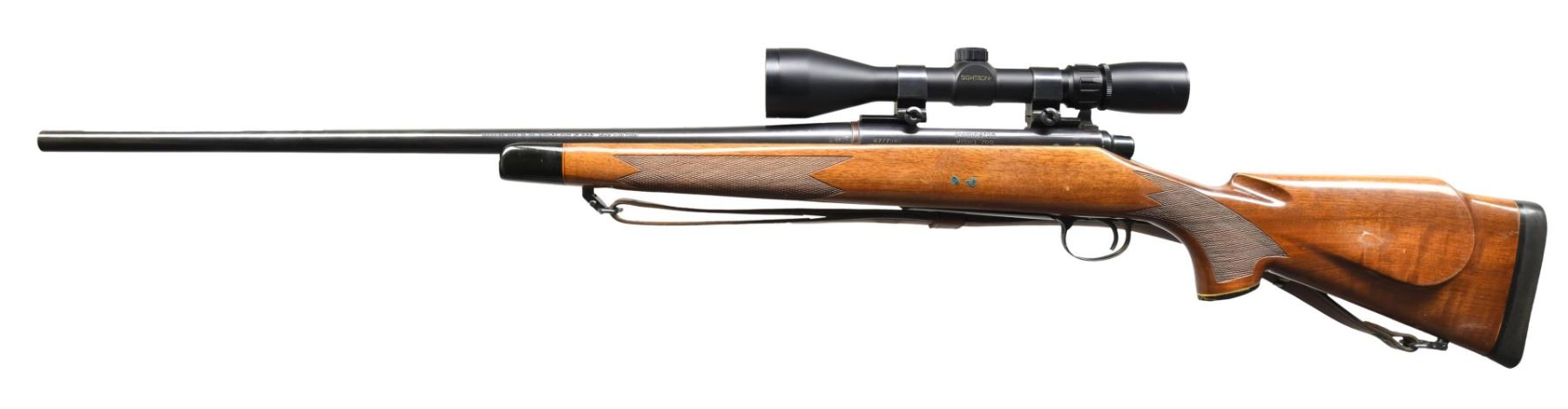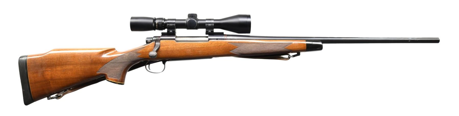 Cal. 300 Win Mag. S# 6777582. Bbl. 24" with plug filled factory tapped holes in locations for fixed sights. Sightron 3.5-10x42 duplex reticle scope with Weaver mounts. Checkered pistol grip stock with Remington buttpad. CONDITION: Over very good metal with some minor rubs and handling marks. Same with the stock set. Excellent optics. Bore is dark with pitting. MODERN (24-4361/ZAL) $400-600
