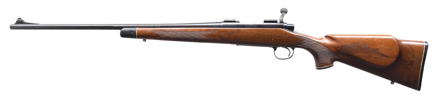 Cal. 223 REM. S# C6499966. Bbl. 24" with dovertailed raised ramp front sight. Screw plugged factory tapped rear sight holes present and ramp rear sight is unattached likely for a previously mounted scope that was on the rails that are currently mounted to the receiver. Checkered pistol grip walnut stock with sling studs. UNATTACHED ACCESSORIES: Ramp rear sight. CONDITION: OVer very good with some spots of oxidation on around the area of the front sight and scattered lightly on the barrel. Nice stock shows only scattered mild handling marks. Bright shiny bore with sharp rifling. MODERN (24-4138/ZAL) $600-900