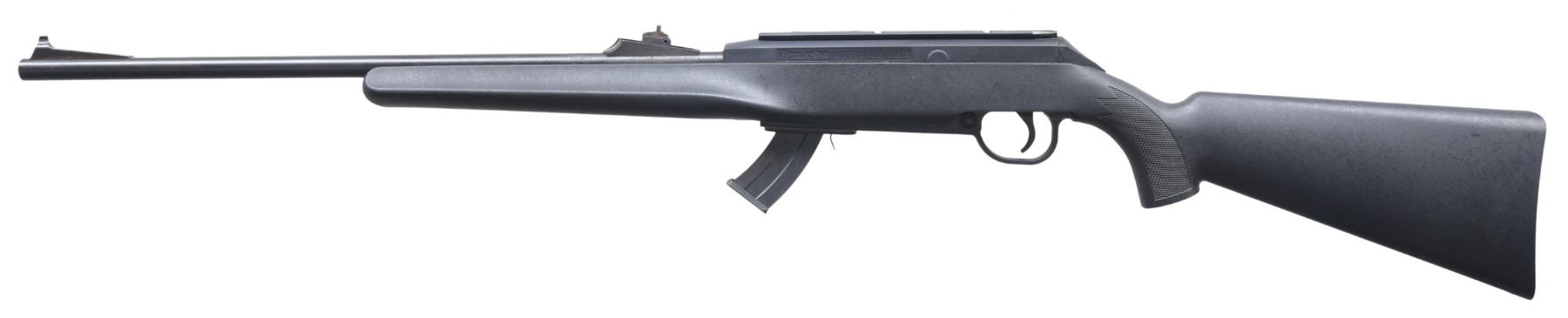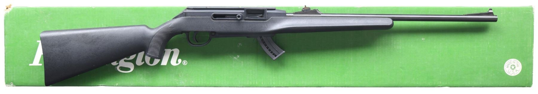 Box. Cal. 22LR. S# 3080474. Bbl. 20" with bead serrated ramp front sight. Adjustable ramp U notch rear barrel sight. Integral receiver rail. Checkered black synthetic stock with beavertail style forend. MAGS: 1-10rd. UNATTACHED ACCESSORIES: Original box. CONDITION: Overall very good with near excellent metal finish with the exception of some small patches of crusted oxidation around the rear sight area. As new stock and bore. Box is very good. MODERN (24-4380/ZAL) $100-200