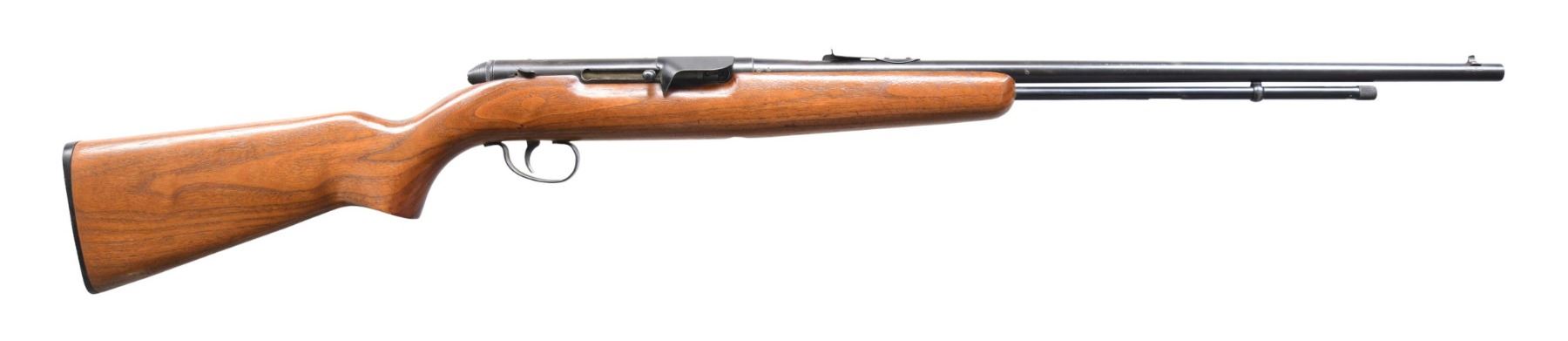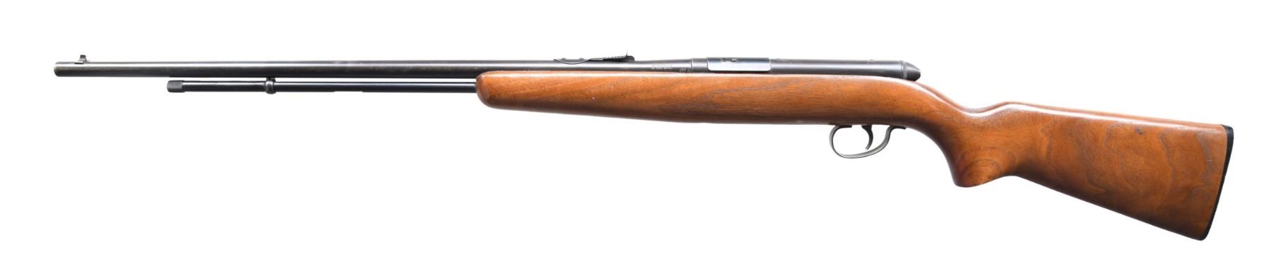 Cal. 22 S, L, LR. S# NSN. Bbl. 24" with dovetailed bead front sight. Elevator adjustable U notch rear sight. 3/4 tubular magazine. Smooth pistol grip walnut stock with checkered Remington hard rubber butt plate. CONDITION: Overall good metal finish with thinning finish at the muzzle and a couple of thumbprint size patches that are in the area of being stored in a rack. There are some scattered light handling marks present on both the metal and stock. Stock was lightly sanded with added varnish. Bright bore with nice rifling. CURIO (24-4386/ZAL) $100-200
