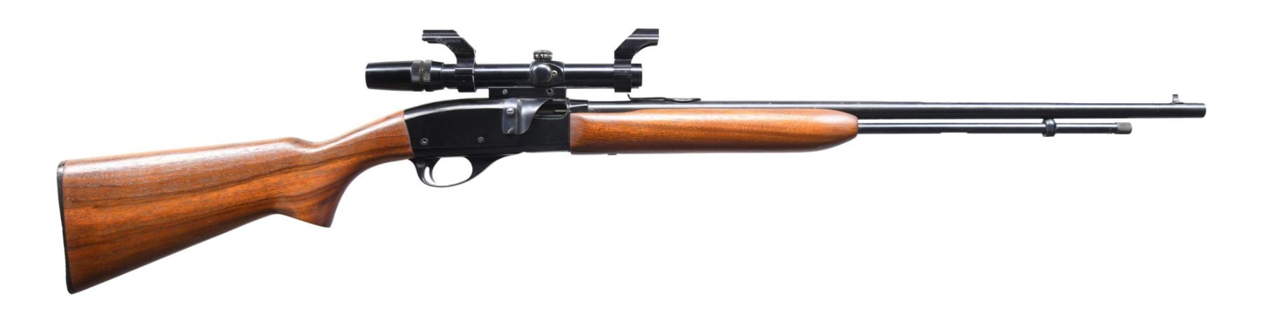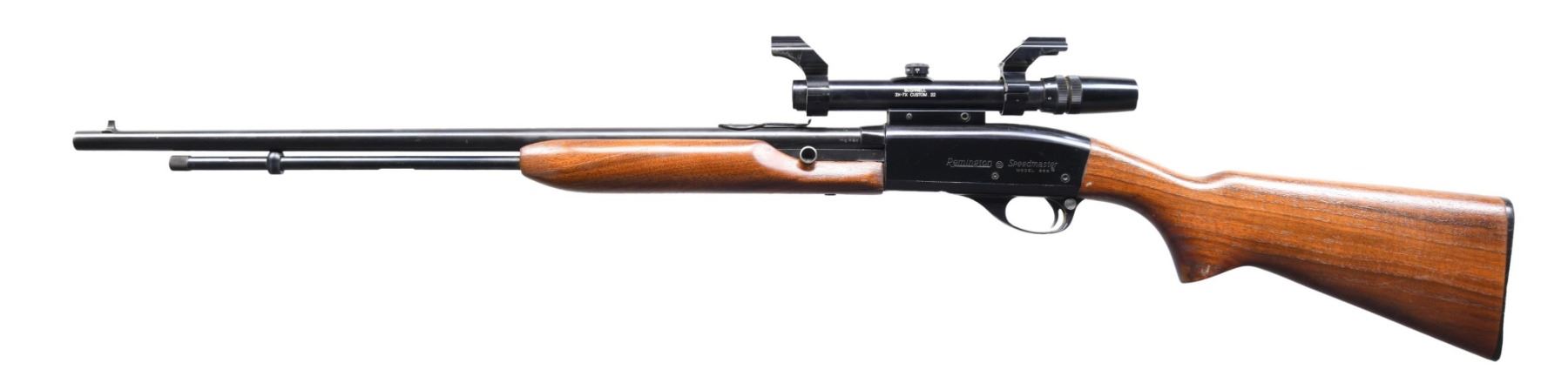 Cal. 22 S, L, LR. S# NSN. Bbl. 24" with dovetailed bead from sight. Elevator ramp rear sight (missing elevator wedge to accommodate the scope. Bushnell 3-7X Custom 22 duplex reticle scope. Smooth pistol grips stock set with checkered Remington hard rubber buttplate. CONDITION: Overall very good metal finish with some muzzle wear and some mild handling marks. Good stock set with the exception of a crack in the forearm and some scattered handling marks. Bright bore with good rifling. Clear optics. MODERN (24-4391/ZAL) $100-200