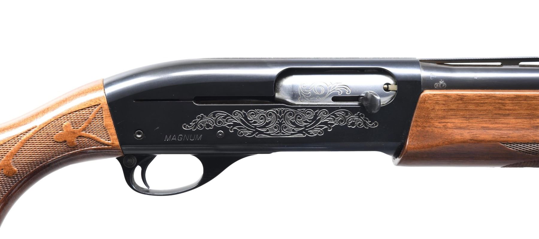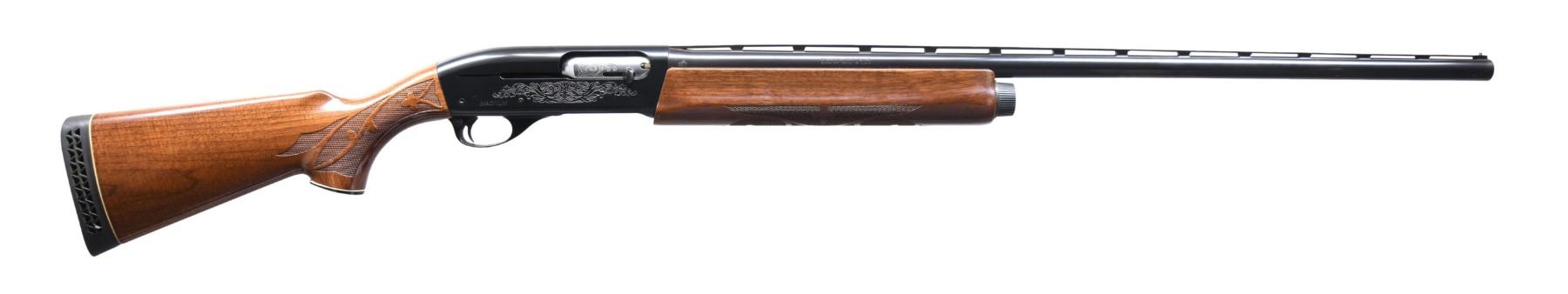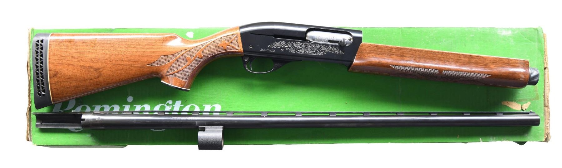 ORIGINAL BOX. Cal. 12 GA MAG 3" Full choke. S# N570244M. Bbl. 30" VR with steel front bead. Standard receiver engraving. Press checkered walnut stock set with Remington vent recoil pad. UNATTACHED ACCESSORIES: Original box. CONDITION: Overall near excellent metal finish and stock set with only a few very faint handling marks. Bright shiny bore. MODERN (24-4243/ZAL) $700-1000