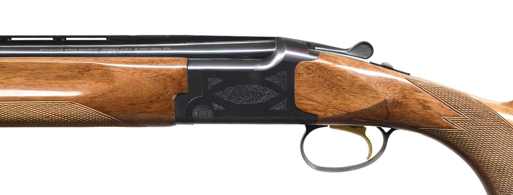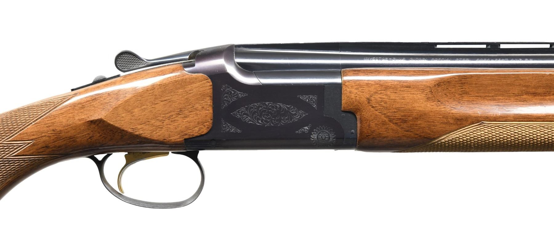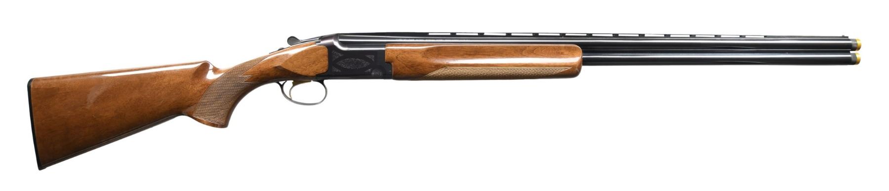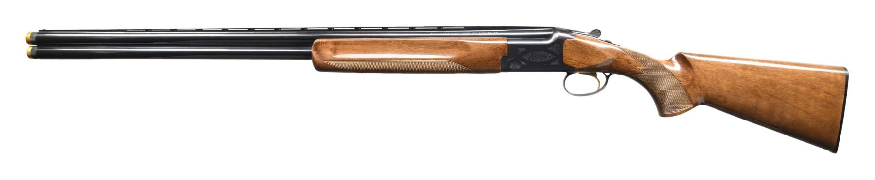 Cal. 20 ga. 2 3/4 & 3". S# 24541NR163. Bbls. 28" vent rib w/ Invector Plus chokes. 1 IC & 1 light Mod extended tubes are included. Blued boxlock action w/ grade 1 scroll ornamentation. Gold plated SST. Selective ejectors. Target forearm & pistol grip walnut stock have cut checkering, gloss finish & original buttplate. 1997 Japanese mfg. CONDITION: over 97% blue. Original wood finish shows scattered marks. Very good bright bores. (24-4571/DS). MODERN. $700-1,100.