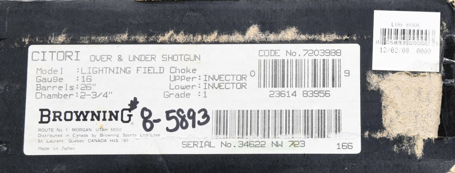 Lot 2310 BROWNING CITORI LIGHTNING FIELD O/U SHOTGUN.