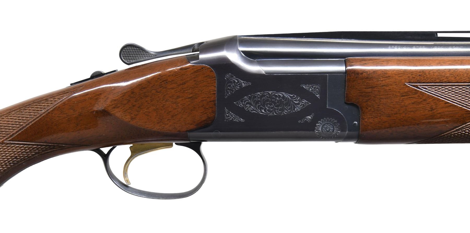 Cal. 16 Ga., 2 3/4". S# 34622NW723 (1994). Bbls. 26". VR barrels with bright bead fitted for Invector chokes. Grade I engraving on action features gold-plated SST and auto-ejectors. Gloss-finished walnut stock set with slim forearm and long tang, round knob pistol grip. LOP: 14 1/2" to buttplate. UNATTACHED ACCESSORIES: matching-numbered box, including paperwork, a box for choke wrench, and Full choke tube; Mod and IC installed. CONDITION: near excellent wood and metal finish. Bright, shiny bore. (24-3600/MD). MODERN. $700-1,000.