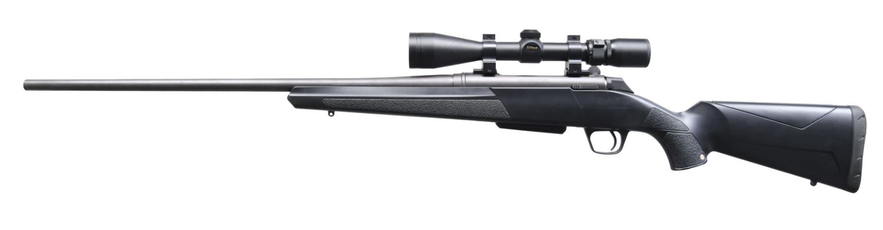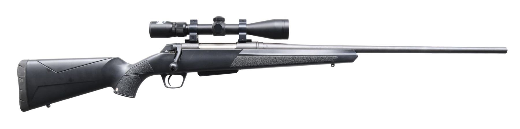 Cal. 270 Win. S# 357ZV14576. Bbl. 24". XPR bolt action rifle mfg. in Portugal by Browning Viana, imported by BACO, and retailed by Winchester. Left side of the bbl. is marked with the Winchester trademark logo, followed by the model and cal. designations, with BACO's importer and Browning Viana's mfg. information marked on the right. Left side of the receiver is marked with the Winchester trademark logo, with "XPR" and the S# marked on the right. Metal components exhibit a blue finish overall, save for on the bolt body, which is polished in-the-white. Textured black synthetic pistol grip stock. Receiver is mounted with a Nikon 3-9x40 scope. MAGS: one 3-rd. CONDITION: metal components retain the majority of their original blue finish, exhibiting some light surface oxidation overall. Muzzle exhibits some edge wear and a spot of moderate oxidation. Very bright bore, exhibiting some mild pitting towards the muzzle while retaining well-defined rifling throughout. Stock is very good, exhibiting some superficial marks from handling and storage. Scope retains a clear and sharp optic. (24-5960/MLW). MODERN. $350-550.