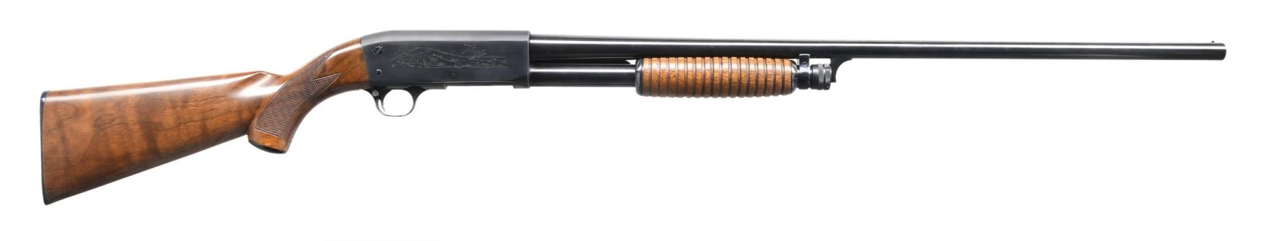 Cal. 16 ga. 2 3/4". S# 416260. Bbl. 28", plain w/ fixed Mod choke & brass bead. Action has game scene roll engraving. Small round grooved forearm & capped pistol grip stock w/ cut checkering & original buttplate. CONDITION: 98% reblued metal finish. Wood has very good refinish. Very good bore. (23-7102/DS). CURIO. $300-450.