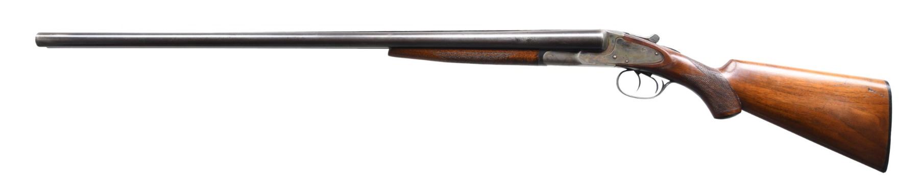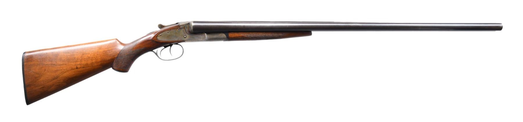 Cal. 12 Ga., 2 3/4". S# R95976 (1927). Barrels 30" with brass bead. Full chokes. Boxlock action with double triggers, extractors & auto safety. Checkered walnut stock set w/ grip cap. LOP: 13" to buttplate. CONDITION: good blue on barrel with areas of worn finish in carry areas. Action has faded case colors with patina. Barrels & action show varnish overspray. Sanded & refinished stock shows recut checkering, gouges & blistering of finish. Shiny bores with couple of small dents. (24-5177/MD). CURIO. $300-450.