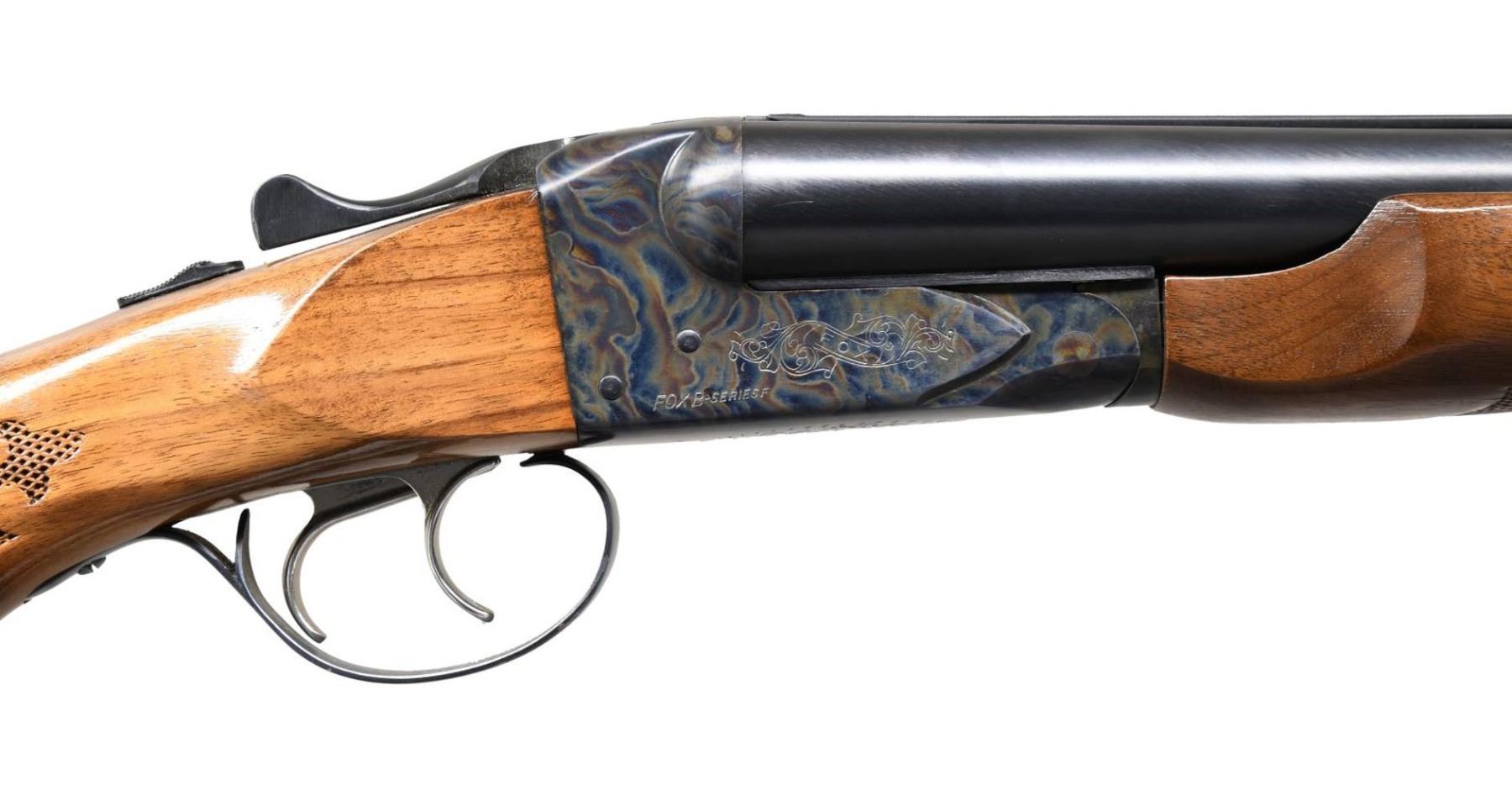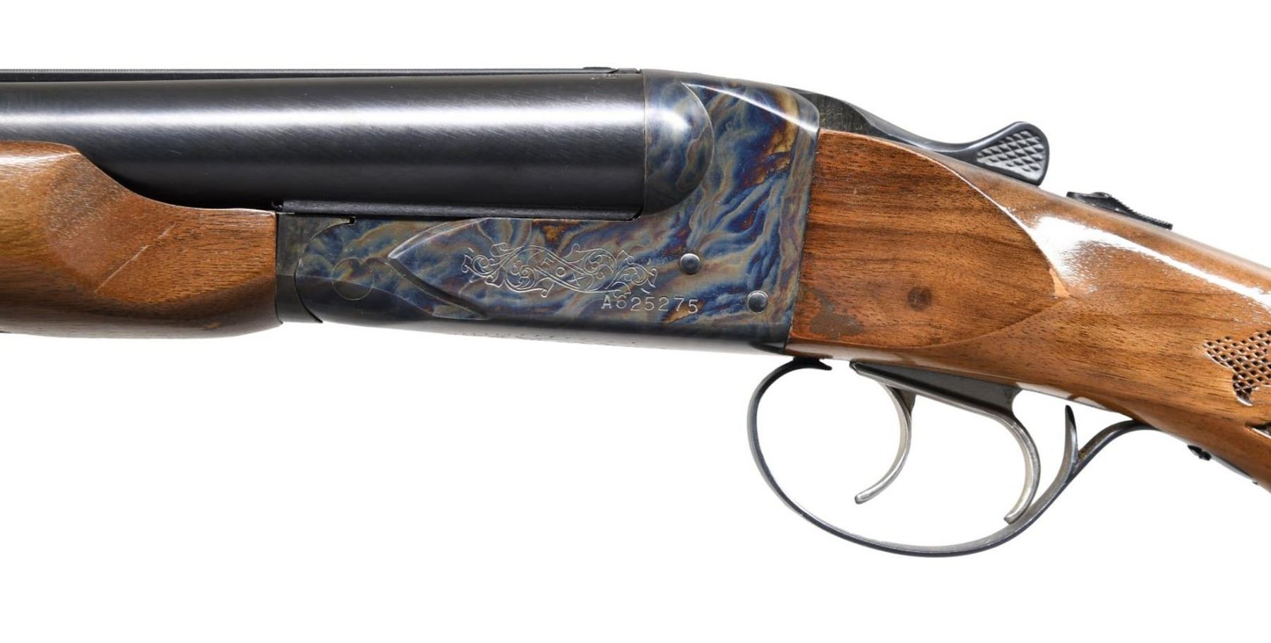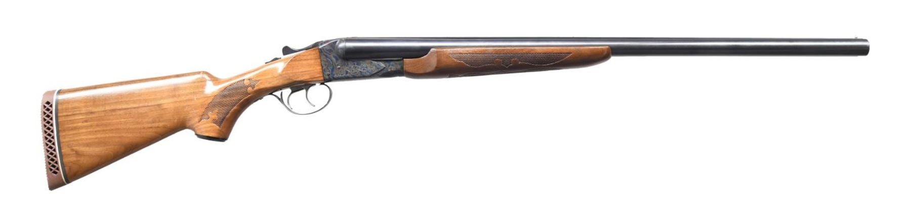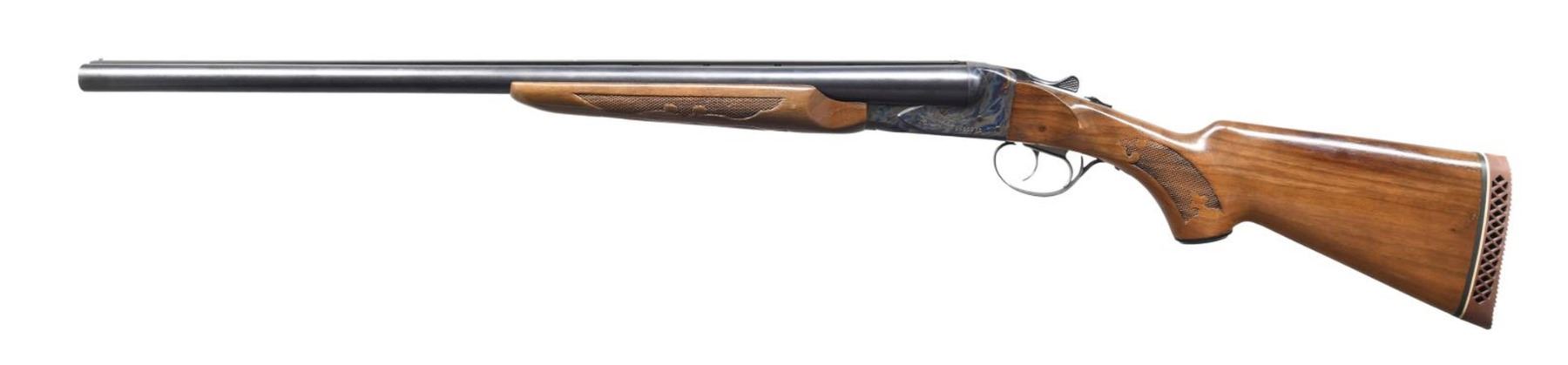 Cal. 12 Ga., 2 3/4". S# A625275 (30X = 1970). The 26" VR bbls. have bright beads. Beveled muzzles appear to have mod chokes. Case-hardened boxlock action with double triggers & extractors. Beavertail forearm and pistol grip stock of gloss walnut with pressed checkering. LOP: 13 1/4" to ventilated pad. CONDITION: near-excellent metal finish with scattered light marks. Very good wood finish with scattered marks and one area of worn finish on the left ear. Bright, shiny bores with light fouling. (24-874/MD). CURIO. $500-800.