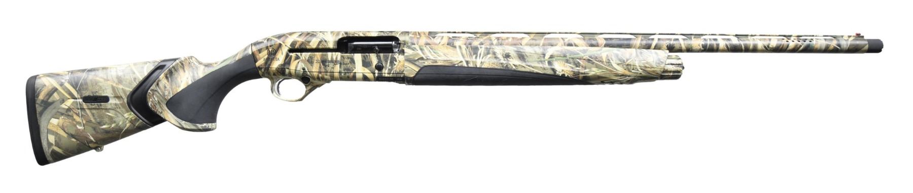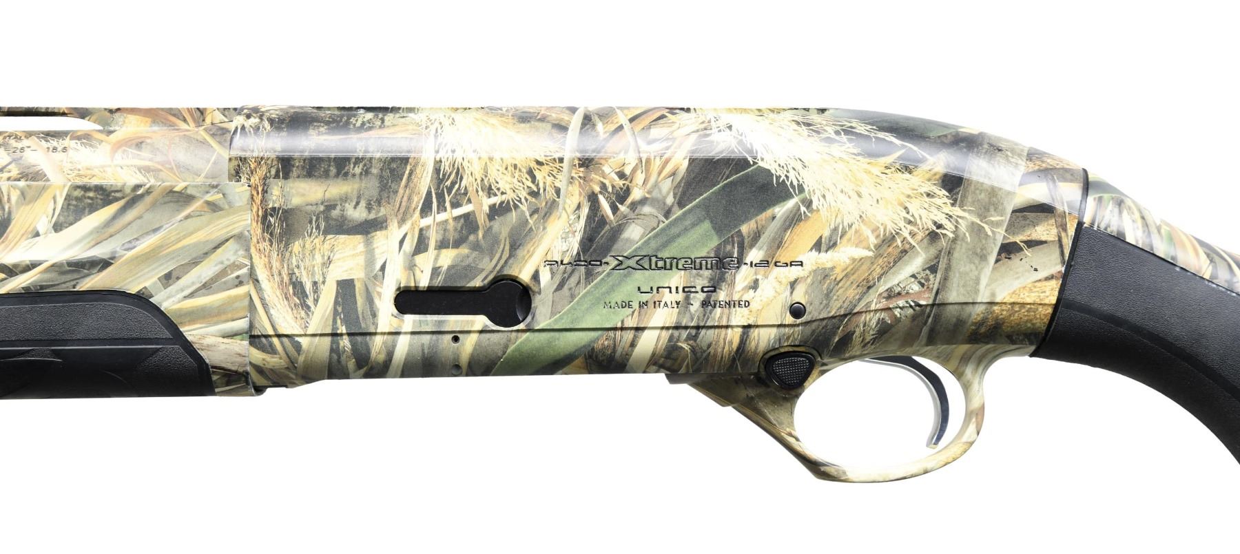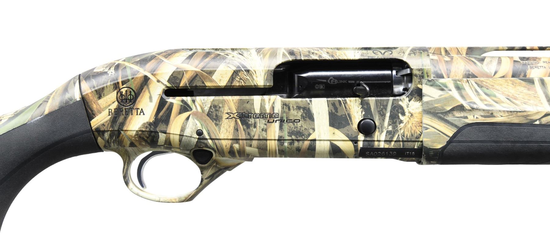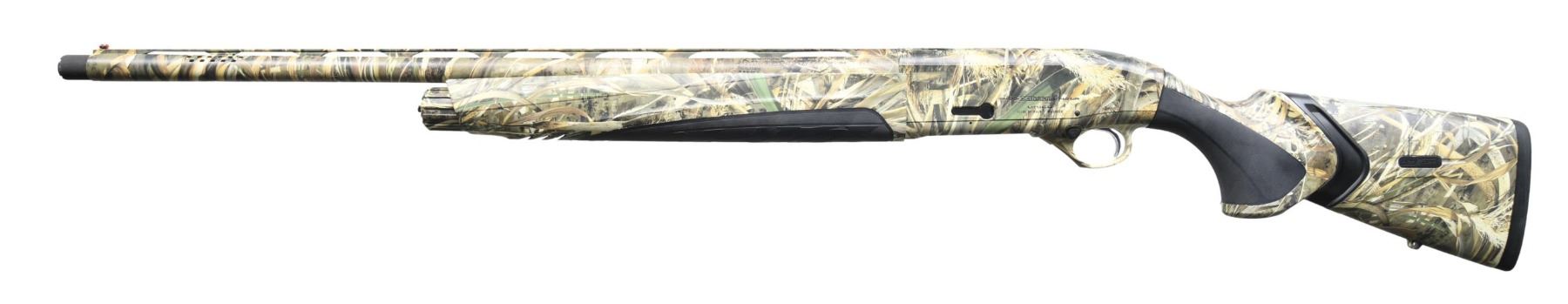 FACTORY HARD CASE. Cal. 12 GA, 2 3/4", 3", and 3 1/2". S# SA026139. Bbl. 26". A400 Xtreme semi-automatic shotgun mfg. in Italy by Beretta and imported by Beretta U.S.A. Corp. Left side of bbl. is marked with Beretta's mfg. information above the cal. designation, with Beretta's importer information marked on the right. Left side of the receiver is marked "A400 - Xtreme - 12 GA/ UNICO/ MADE IN ITALY - PATENTED", with the Beretta logo, "Xtreme/ UNICO" and the S# marked on the right. Aluminum receiver, steel bbl., as well as the polymer pistol grip buttstock and forend exhibit Realtree's MAX-5 camouflage finish. Buttstock and forend exhibit textured black rubber panels. Ported bbl. features a V/R with a red fiber optic front sight and a TRULOCK Full #1 threaded choke. UNATTACHED ACCESSORIES: black plastic hard case containing chokes and factory paperwork, as well as a set of Carlson's chokes. CONDITION: excellent, with metal components and polymer furniture retaining bountiful amounts of their original factory finishes overall. Mirror bore. Action functions appropriately when cycled by hand. Case is very good overall. (24-3228/MLW). MODERN. $500-700.