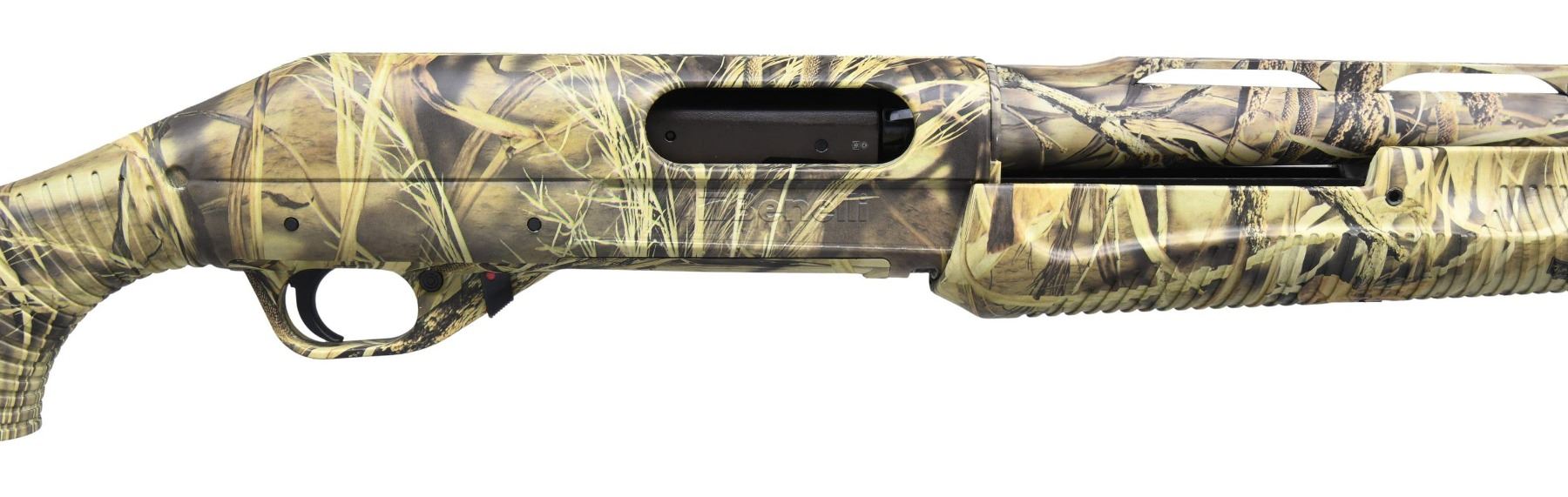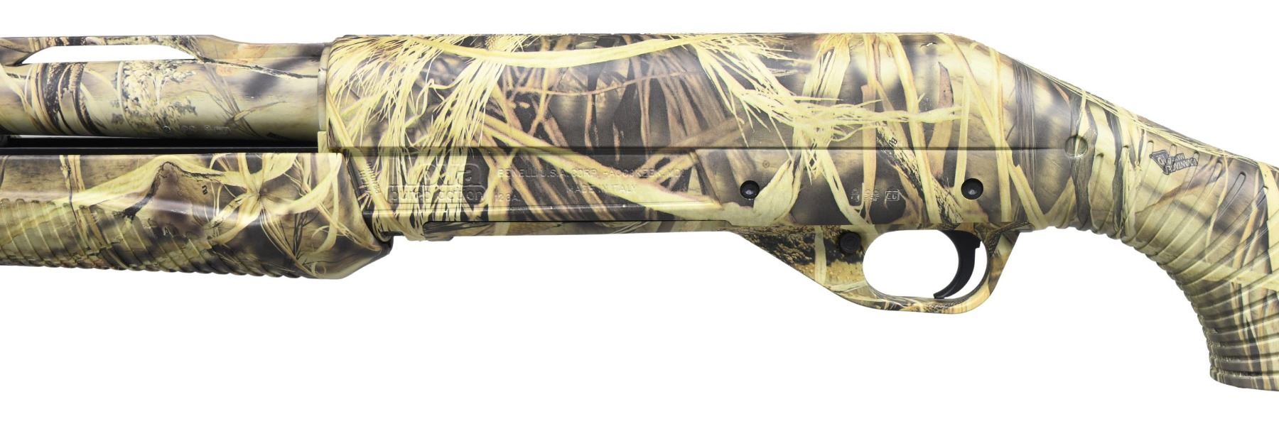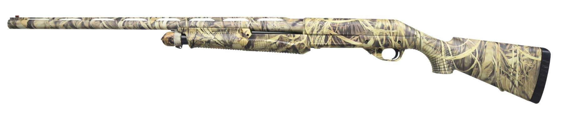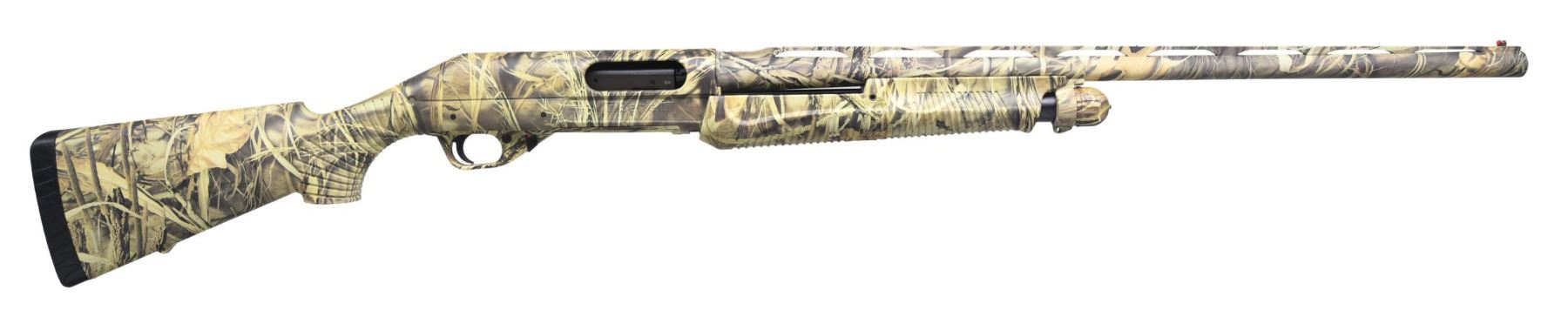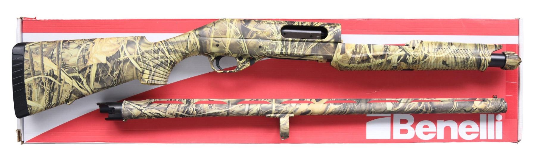 MATCHING FACTORY BOX. Cal. 12 GA, 2 3/4", 3", and 3 1/2". S# Z451225. Bbl. 27 5/8". Nova pump action shotgun mfg. in Italy by Benelli and imported by Benelli U.S.A. Corp. Left side of bbl. is marked with Benelli's importer information, with the cal. designation marked on the right. Polymer receiver, stock, pump, and steel bbl. exhibit Realtree's Advantage MAX-5 camouflage finish. V/R with red fiber optic front sight. UNATTACHED ACCESSORIES: matching factory box. CONDITION: near new, with metal and polymer components retaining virtually all of their original factory finish overall. Mirror bore, exhibiting grease throughout. Box exhibits some mild exterior wear and a few small tears, but otherwise remains sturdy and serviceable. (24-3295/MLW). MODERN. $300-400.