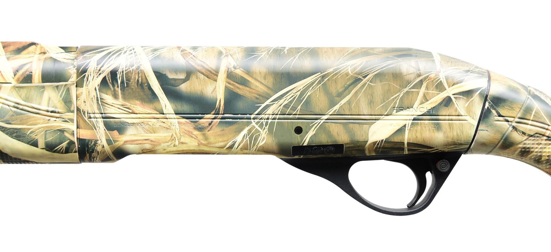 SHOTGUN. Cal. 20 GA, 2 3/4" & 3". S# BM03627Z. Bbl. 25 1/2". Affinity semi-automatic shotgun mfg. in Italy by Franchi and imported by Benelli U.S.A. Corp. Left side of bbl. is marked "F-MADE IN ITALY", with the cal. designation marked on the right. Left side of the receiver is marked with Benelli's importer information, Italian proofs, and "FRANCHI/ F-MADE IN ITALY", with "FRANCHI", "AFFINITY", and the S# marked on the right. Aluminum receiver, steel bbl., and checkered polymer furniture exhibit Realtree's MAX-4 HD camouflage finish. Black polymer trigger guard. Matte V/R with red fiber optic front sight. Bbl. is fitted with a threaded with a Black Cloud modified choke. UNATTACHED ACCESSORIES: factory choke set. CONDITION: excellent, with metal components and polymer furniture retaining virtually all of their original factory Realtree camouflage finish overall. Mirror bore. Action functions appropriately when cycled by hand. (24-2738/MLW). MODERN. $400-600.