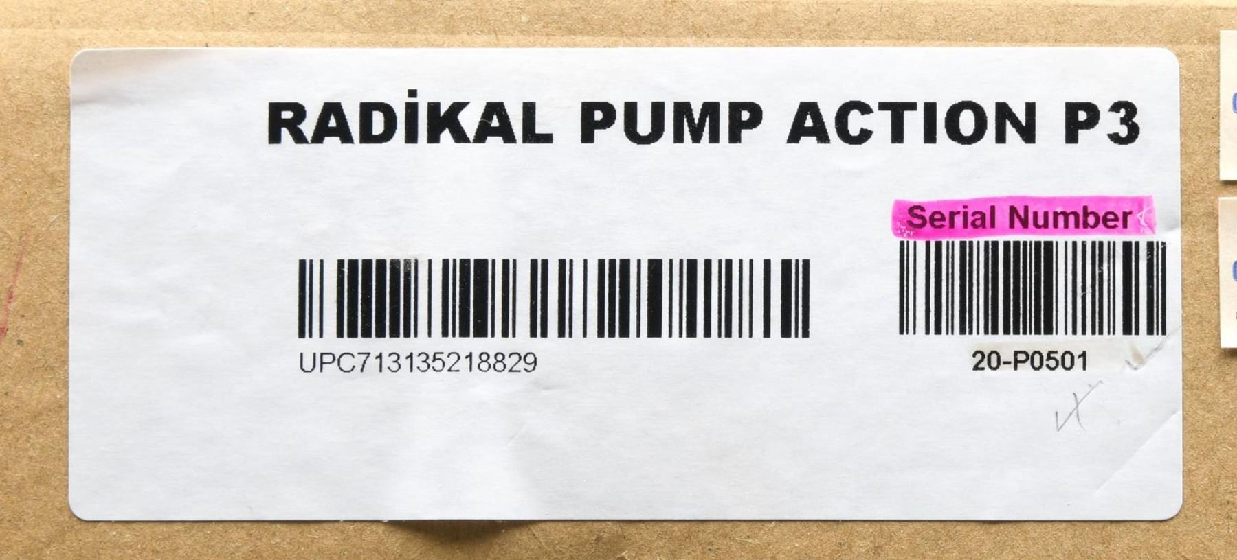 Lot 2535 RADIKAL P3 PUMP ACTION SHOTGUN WITH MATCHING BOX.