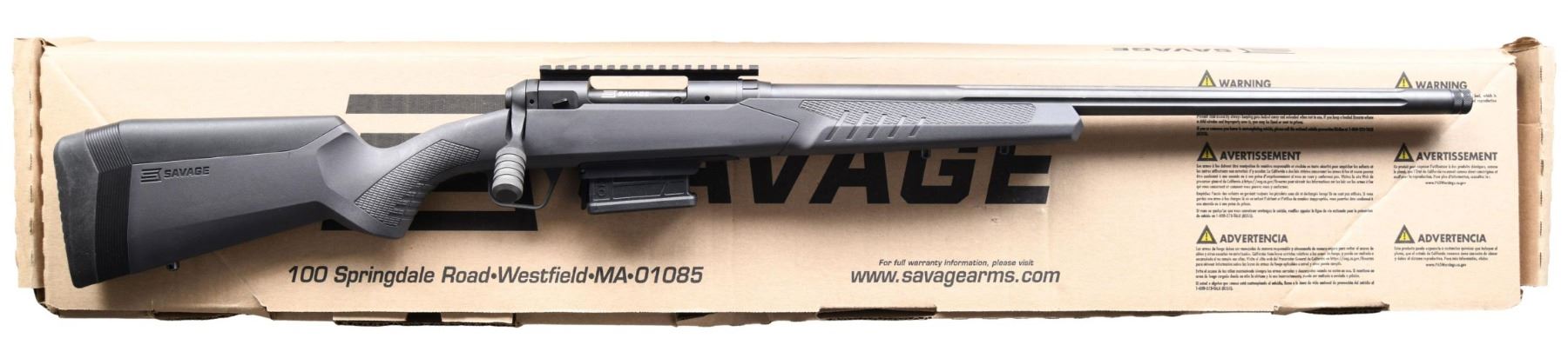 Cal. 308 Winchester. S# P781310. Bbl. 24"; threaded and fluted. Marked on the left side, "SAVAGE model 110 308 Win CAL". Receiver is fitted with a picatinny rail. Accutrigger. Rifle accepts detachable mags. Accufit synthetic stock system with accessory kit to customize stock fit. MAGS: three detachable MDT 5-rd. UNATTACHED ACCESSORIES: matching cardboard shipping box and trigger lock. CONDITION: all aspects, including bore, are very good to near excellent. (24-6011/RW). MODERN. $700-900.