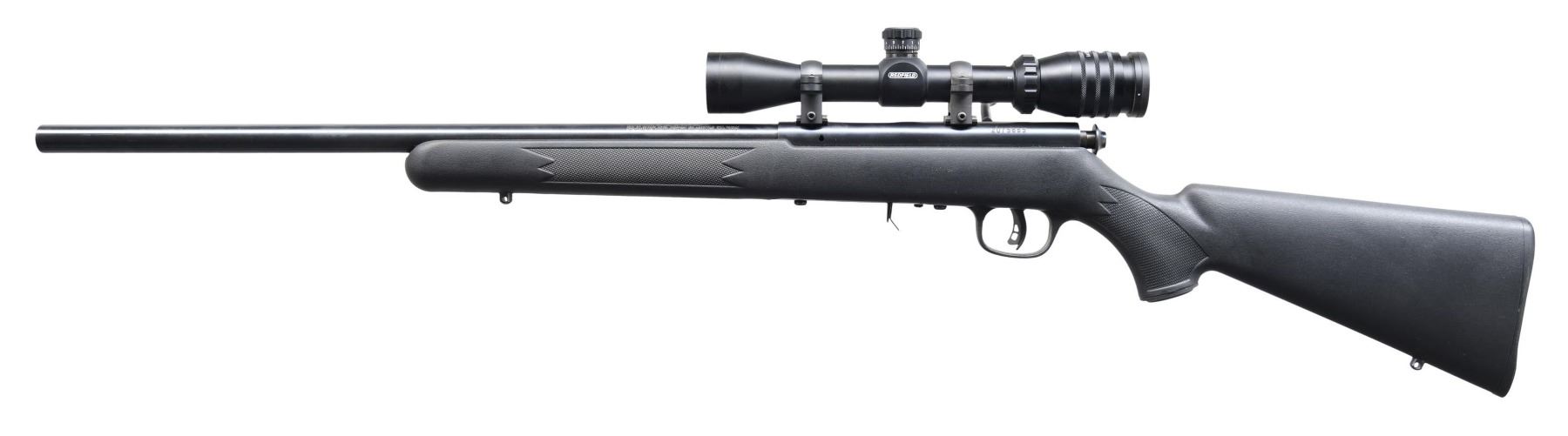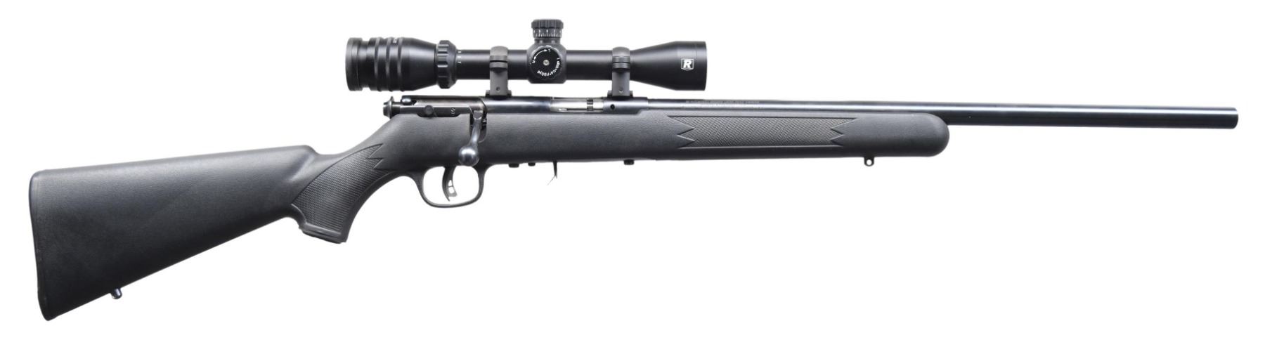BOX. Cal. 22 WMR (22 Mag.). S# 2075665. Round 21" barrel. Redfield Battlezone Tac.22 2-7x34 scope with Tac-Moa reticle on 2 piece rings & bases. Black synthetic stock. MAGS: NONE. UNATTACHED ACCESSORIES: factory box with paperwork & scope caps. CONDITION: all aspects near excellent including bore. Near excellent scope with clear optics. (24-4383/MD). MODERN. $250-350.