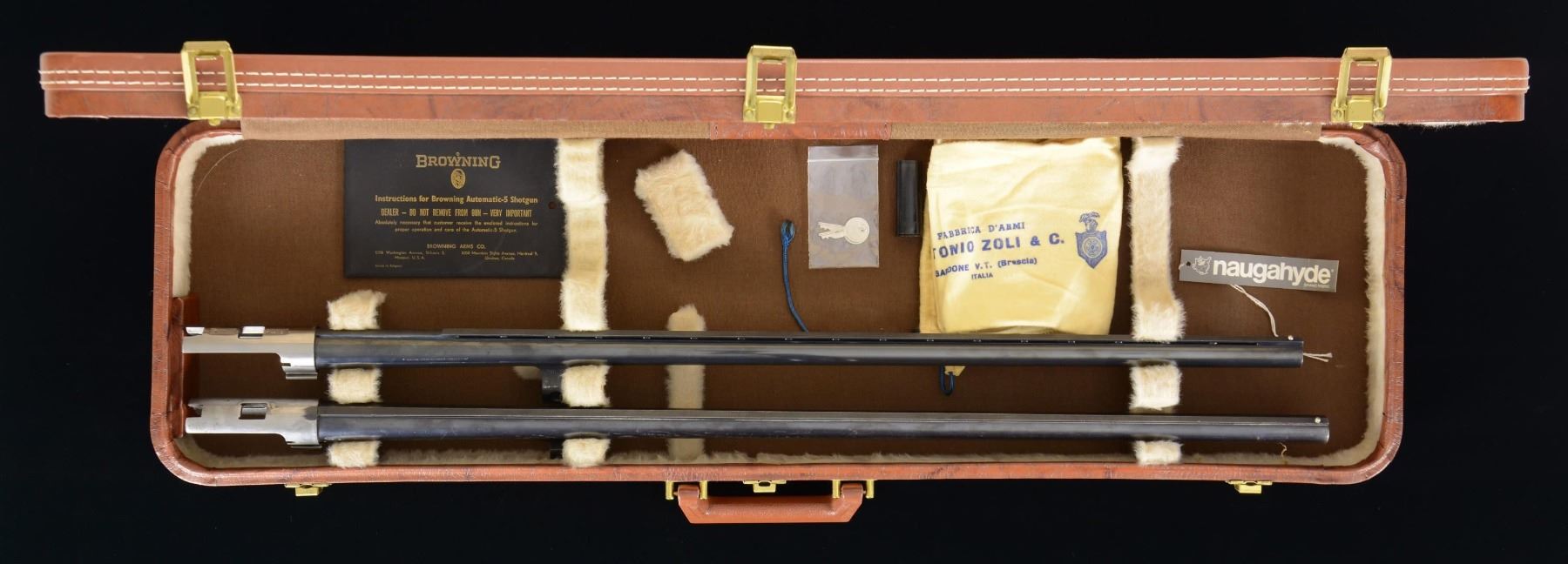 Lot 2635 BROWNING CASE WITH 2 SHOTGUN BARRELS.