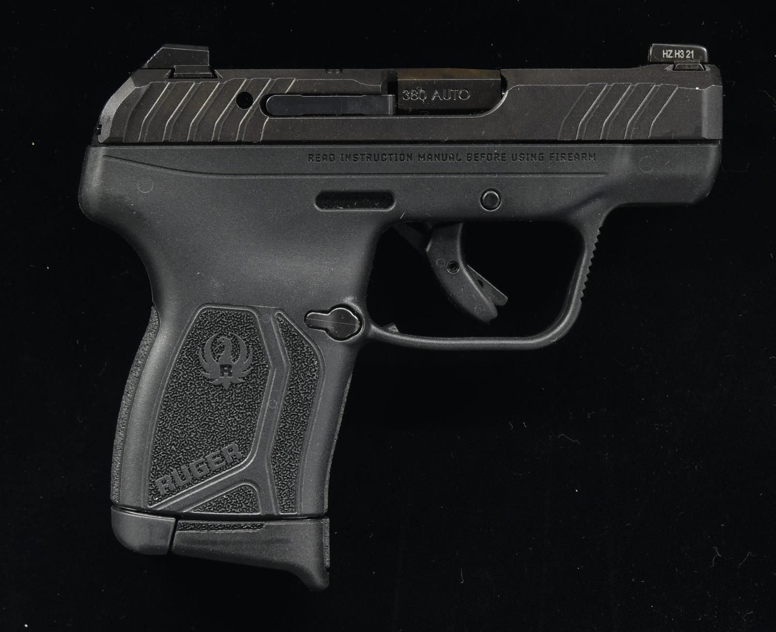 Cal. 380 ACP. S# 380923743. Bbl. 2.8". Mfg. 2022 as Model 13716 with black finish plus dovetailed sights (front night sight) on slide having front and rear cocking grooves. Higher capacity version of LCP model. MAGS: 1 factory 10 rd. with finger extension. UNATTACHED ACCESSORIES: factory box and packaging. CONDITION: all aspects near excellent; appears new. PROVENANCE: The Collection of Gun Sport Ltd. owned by Jon R. Thomas. (23-4211/NW). MODERN. $300-400.