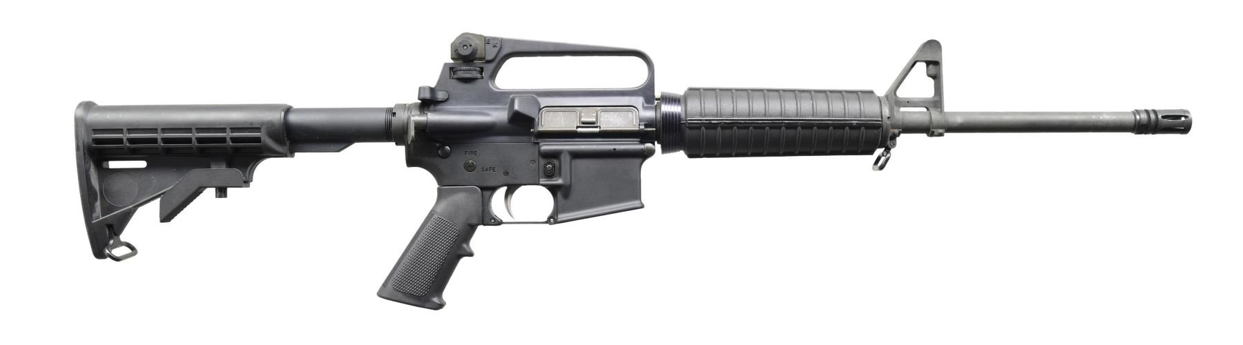 Cal. 5.56 NATO. S# BK1604939. Bbl. 16". An Ilion, NY-manufactured Bushmaster XM15-E2S carbine. Threaded barrel terminated with an A1 flash hider. Protected post front sight/gas block. No bayonet lug. Round A2 carbine handguards retained with tapered delta ring. Carry handle upper receiver with teardrop forward assist, brass deflector, and dual aperture, windage, and elevation-adjustable protected peep sight. Six-position collapsible shoulder stock. Left side controls. Sling swivels, front and rear. CONDITION: all aspects indicate very little use; the only noticeable blemishing consists of a few small scratches on the forward assist. Bright bore with strong rifling. Fire control mechanism appears to function correctly when cycled by hand. (24-5460/JZ). MODERN. $500-900.