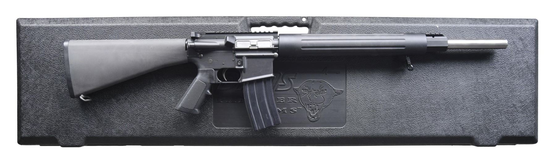 MATCHING FACTORY HARD CASE & ACCESSORIES. Cal. 223. S# FH39507. Bbl. 20 1/2". A-15 semi-automatic rifle mfg. by DPMS. Left side of the receiver is marked with the DPMS logo above the model designation, cal. designation, as well as the S#. Underside of the stainless steel bbl. is marked "DPMS .223 1/9". Aluminum receiver, flat top upper, solid grooved handguard, and gas block exhibit a matte black finish. Black polymer A2 pattern buttstock and checkered pistol grip. MAGS: two 30-rd. UNATTACHED ACCESSORIES: matching factory hard case containing mags., black nylon sling, and a cleaning kit. CONDITION: excellent, with metal components retaining virtually all of their original factory finishes overall. Mirror bore, exhibiting well-defined rifling throughout. Polymer furniture is excellent. Case is very good overall. (24-3730/MLW). MODERN. $500-800.