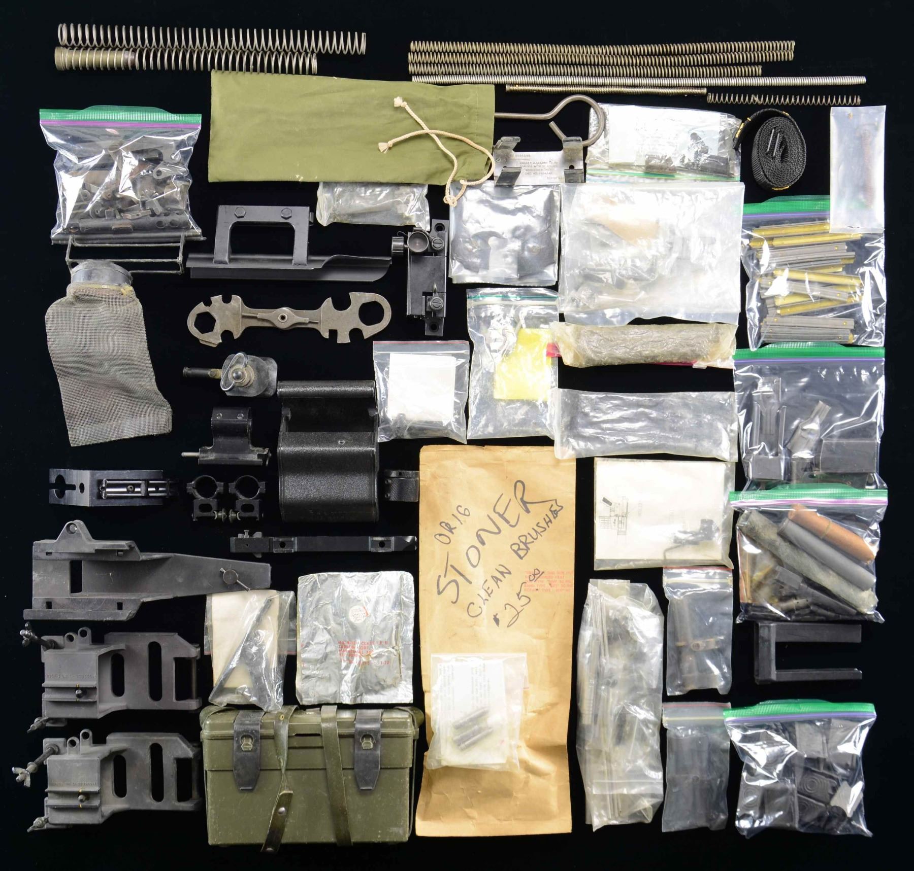 ACCESSORIES. Large lot of assorted parts, scopes, mounts, and accessories, with a few notable highlights including: 1) FPB M/48 submachine gun parts kit consisting of a stock, mag., mag. well, bbl., lower assembly, and end cap. 2) 2 Bushmaster Pistol accessory kits. 3) 1 German WWII "M.P.41" mag. loader. 4) 1 U.S. M6 periscope. 5) 6 assorted scopes. 6) various assorted optic mounts, parts, and accessories. CONDITION: good to very good, with most parts, mounts, and accessories exhibiting varying degrees of wear and superficial marks from handling and storage. All but 2 scopes (Weaver and Lyman All-American) retain clear and sharp optics. PROVENANCE: Lifelong Collection of Terrence McCarty. (02-21821-13/MLW). $300-600.