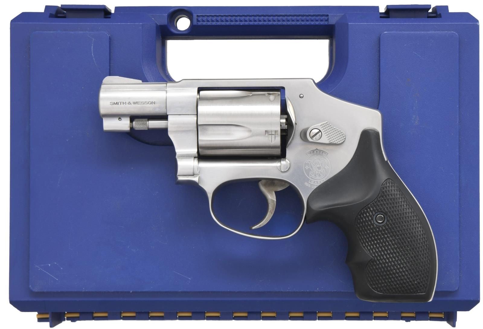 MATCHING FACTORY CASE. Cal. 9x19mm Parabellum. S# CCB4243. Bbl. 1 7/8". Model 940-1 double action hammerless revolver mfg. by Smith & Wesson. Left side of bbl. is marked "SMITH & WESSON", with the cal. designation marked on the right. Left side of frame is marked with the S&W trademark logo, with S&W's mfg. information marked on the right. Metal components exhibit a stainless steel finish. Frame is mounted with 2-piece checkered black rubber grips. UNATTACHED ACCESSORIES: matching factory hard case. CONDITION: near excellent, with metal components retaining bountiful amounts of their original factory finish overall. Cyl. exhibits a very light dragline. Mirror bore, exhibiting well defined rifling throughout & 1 ring bulge approx. 1/2" from cyl. face. Grips are excellent overall. (23-2219/MLW). MODERN. $300-500.