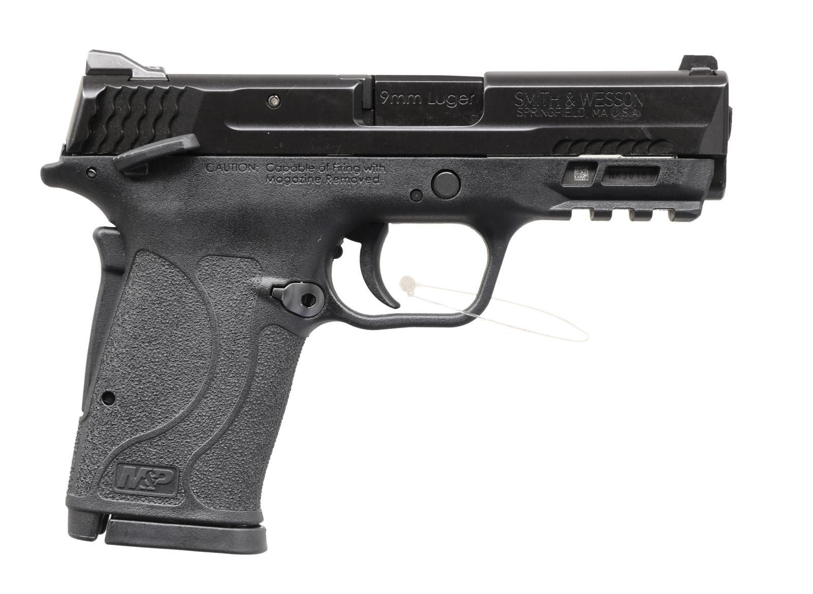 EZ TS PISTOL. Cal. 9MM. S# NKJ0167. Bbl. 3.5". A compact size pistol w/ an 8+1 magazine capacity. Lightweight polymer frame. Ambidextrous thumb safety. Backstrap safety. Matte black finish. Slide serrated front & rear. White, 3-dot sights w/ drift windage adjustable rear sight. Short picatinny rail section below barrel for accessory mounting. MAGS: 2 factory 8 rd. UNATTACHED ACCESSORIES: factory box, lock & paperwork. CONDITION: all aspects indicate as new, in box. Finish complete & consistent. Bright bore w/ strong rifling. PROVENANCE: the Collection of Gun Sport Ltd owned by Jon R. Thomas. (23-2940/JZ). MODERN. $300-500.