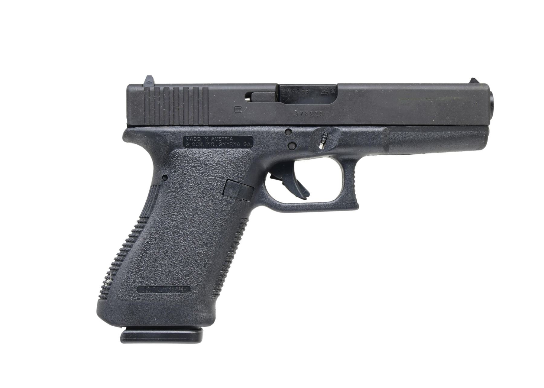 Cal. 45 ACP. S# AVM223US. Bbl. 4.61". Standard model with matte black finish. Fixed front sightand fixed rear sight. Standard polymer frame with left-side slide release and magazine release. MAGS: two 13 rds. UNATTACHED ACCESSORIES: factory box, paperwork, cleaning brush, and magazine loader. CONDITION: near excellent overall condition, with approx. 95% original finish having light wear. Bore is bright with strong rifling. PROVENANCE: from the lifelong collection of Terrence McCarty. (24-170/MD). MODERN. $300-$500.