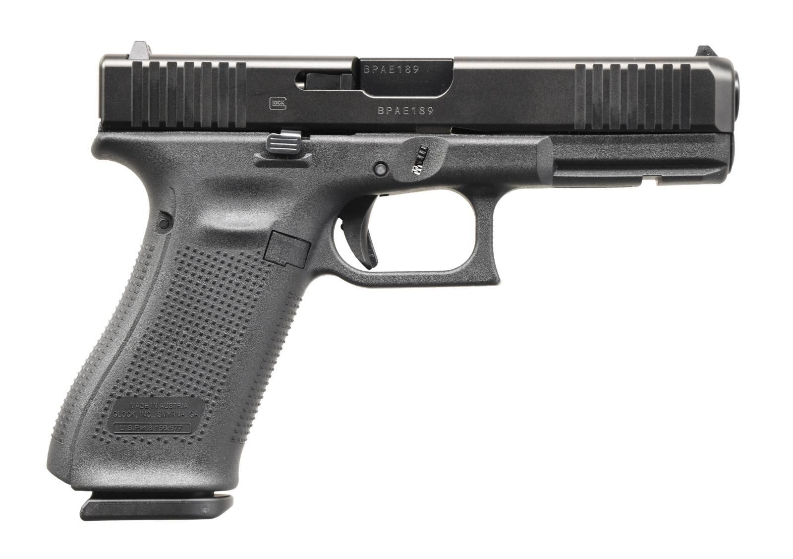 Cal. 40 S&W. S# BPAE189. Bbl. 4 1/2". Standard white outline Glock sights. Austrian made Gen 5 Glock 22 pistol. Matte black finish. Polymer frame w/ accessory rail. MAGS: 3-15 rd. UNATTACHED ACCESSORIES: matching numbered factory hardcase w/ manual, cable lock, mag loader, cleaning rod, bore brush, & four grip straps. CONDITION: all aspects near new, in the box. PROVENANCE: the Collection of Gun Sport Ltd owned by Jon R. Thomas. (23-3146/MJC). MODERN. $300-500.
