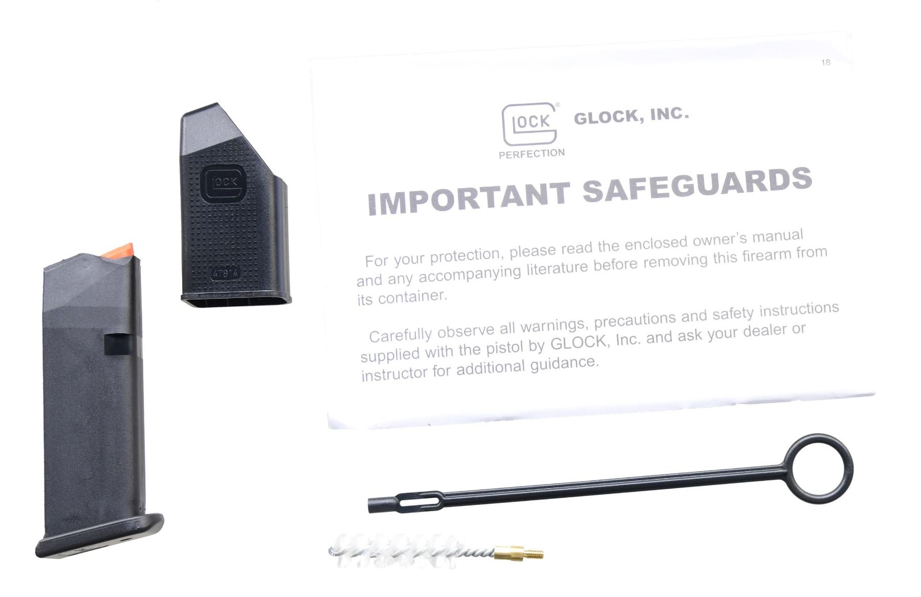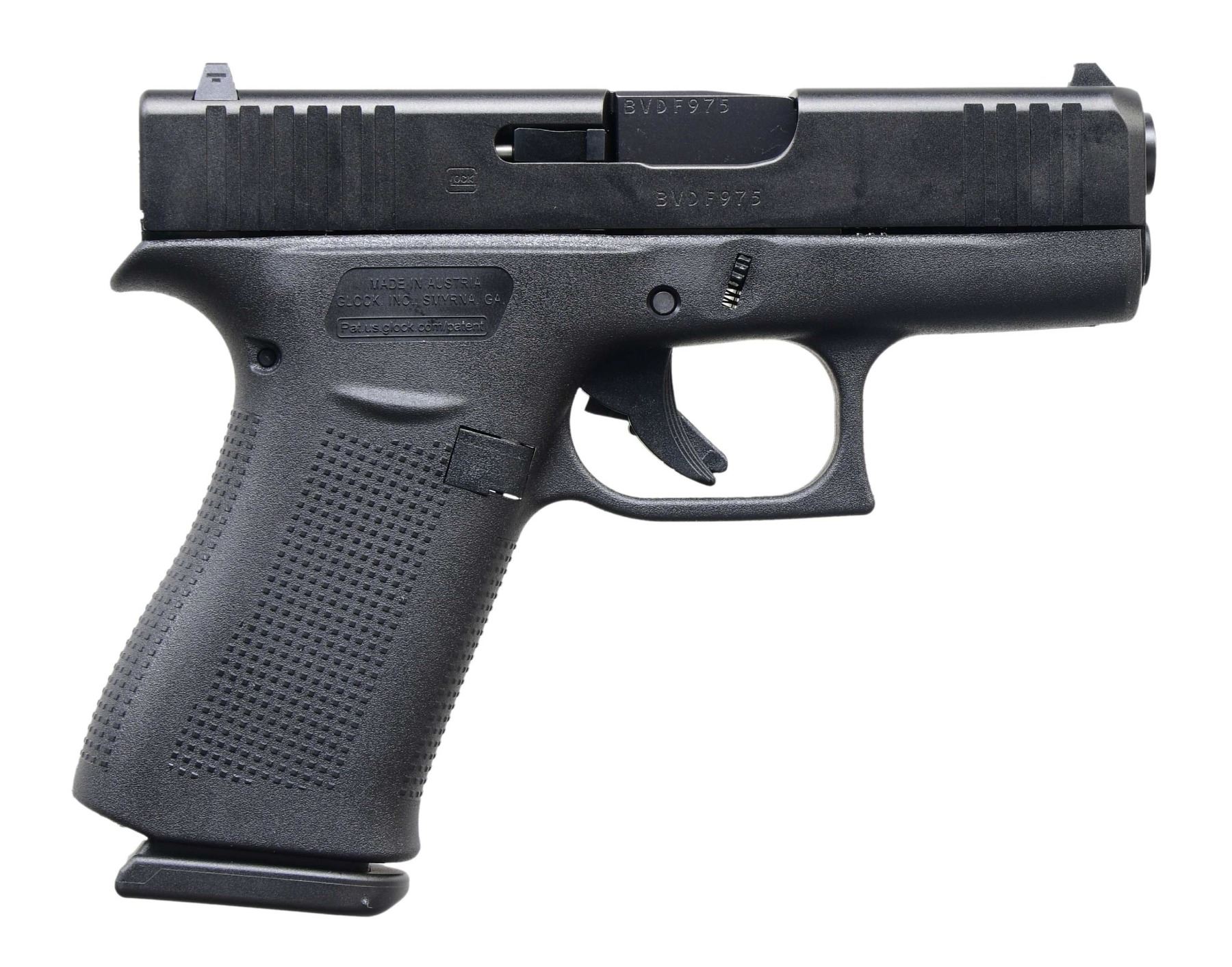 Cal. 9x19. S# BVDF975. Standard Glock 43X model with black polymer frame and steel slide. A 3.41" barrel with fixed front sight and fixed rear sight. Frame features left side thumb safety and left side magazine release. Black textured polymer grip. MAGS: two 10 Rds. UNATTACHED ACCESSORIES: factory box, instruction manual, cleaning rod, and brush. CONDITION: an overall near excellent metal finish. Bore is bright with sharp rifling. PROVENANCE: the collection of Gun Sport Ltd., owned by Jon R. Thomas. (23-3095/MD). MODERN. $300-$500.