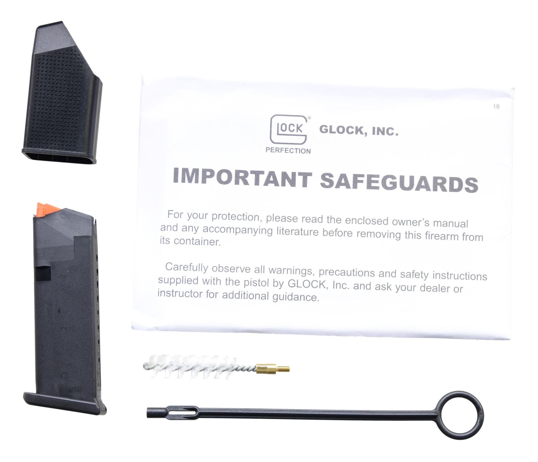 Cal. 9x19. S# BVDF976. Standard Glock 43X model with black polymer frame and steel slide. A 3.41" barrel with fixed front sight and fixed rear sight. Frame features left side magazine release. Black textured polymer grip. MAGS: two 10 Rds. UNATTACHED ACCESSORIES: factory box, instruction manual, cleaning rod, and brush. CONDITION: an overall near excellent metal finish. Bore is bright with sharp rifling. PROVENANCE: the collection of Gun Sport Ltd., owned by Jon R. Thomas. (23-3097/MD). MODERN. $300-$500.