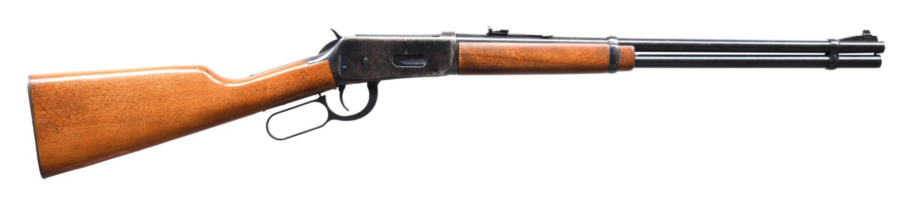 1) S#. 2944052 (1965). Bbl. 20" with dovetailed bead front sight on a serrated ramp and dovetailed, elevator-adjustable, U-notch rear sight. Straight grip, smooth hardwood stock set with checkered shotgun butt. CONDITION: overall, very good bbl. and mag. bluing, with some light muzzle wear and scattered handling marks. Receiver finish has spotted freckling and fading finish in the carry areas. Very good stock with some minor handling marks. Decent bore with light frosting and strong rifling. CURIO (24-5955/ZAL). 2) S# 4170143. (1975). Bbl. 20" with dovetailed bead front sight on serrated ramp and dovetailed, elevator-adjustable, U-notch rear sight. Smooth straight grip walnut stock set with checkered Winchester hard rubber buttplate. CONDITION: overall, very nice bbl. and mag. bluing, with some minor handling marks, some mild freckled oxidation around the rear sight, and some light dings around the front sight. Receiver finish has spotty flaking and freckling. Stock is nice with some scratches and handling marks. Bright bore with sharp rifling. MODERN (24-5956/ZAL). $700-1,200