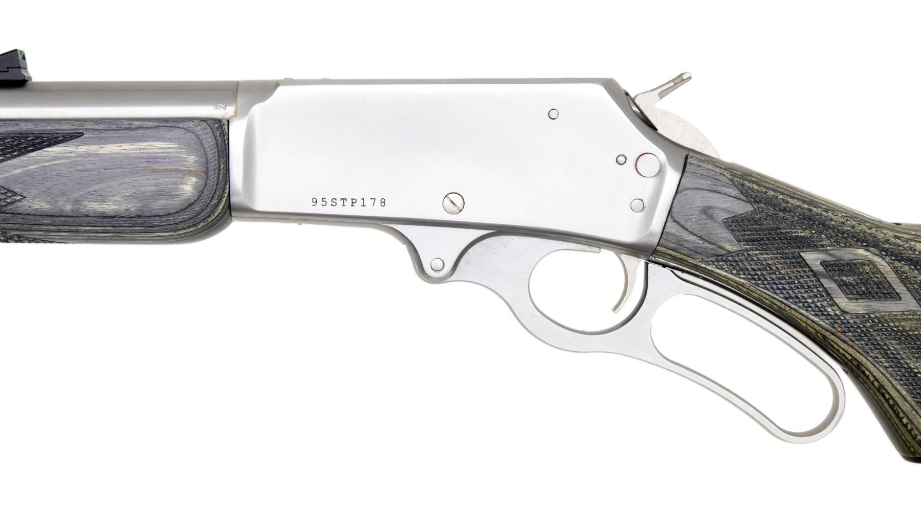 Cal. 45-70. S# 95STP178. Bbl. 16 1/4". Fiber optic sights. Receiver is factory-drilled and tapped for scope mounting. JM and New Haven, CT-marked bbl. Stainless finish. Laminated stock set with bottom-mounted sling studs and Pachmayr recoil pad. LOP: 13 1/2". UNATTACHED ACCESSORIES: matching-numbered factory box with safety lock and manual. CONDITION: all aspects are near excellent. (24-3612/MJC). MODERN. $500-800.