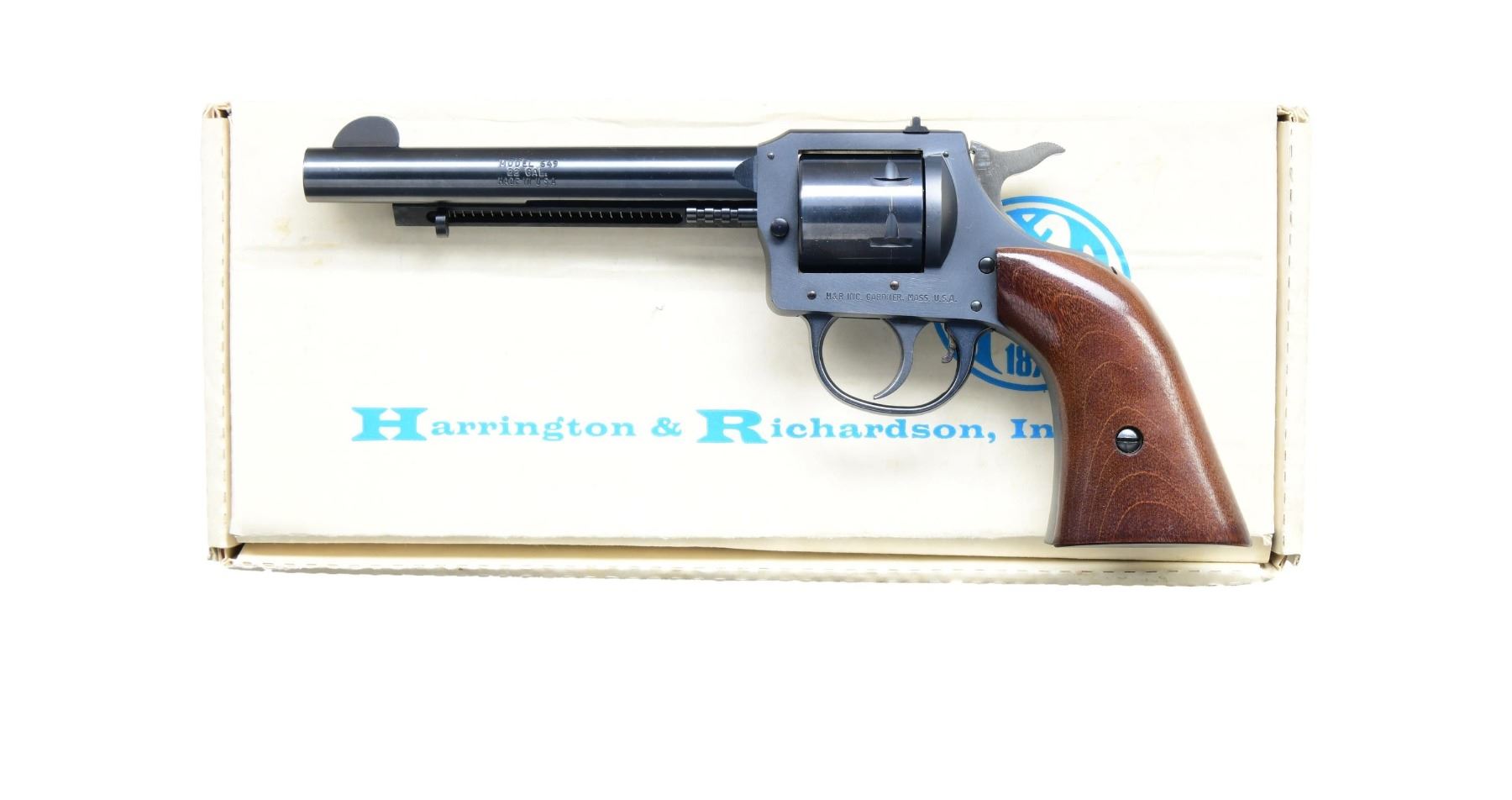 Cal. 22 LR / 22 Mag. S# AR45933 (1977). This revolver features a blued finish with a 5 1/2 inch barrel. The front sight is a fixed blade, and the rear sight is an adjustable notch. The revolver is fitted with smooth walnut grips. The six-round cylinder is not fluted. UNATTACHED ACCESSORIES: Extra cylinder chambered in .22 Magnum, factory box. CONDITION: The revolver is in excellent overall condition with approximately 95% of the blued finish remaining on the barrel and frame. The grips are in excellent condition with only minor handling marks. The bore is bright with strong rifling. PROVENANCE: From the Collection of a Tennessee Gentleman. (24-4509/BH) MODERN. $300-$500.
